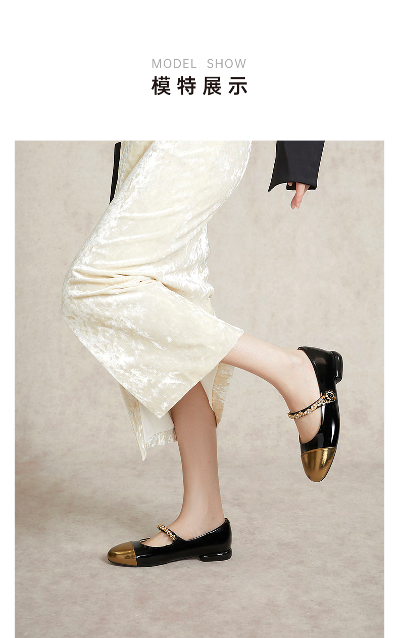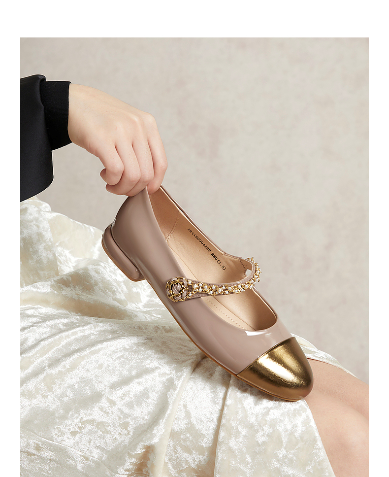 千百度闪钻羊皮镂空玛丽珍鞋凉鞋女春季新低跟透气单鞋晚晚鞋A25179334