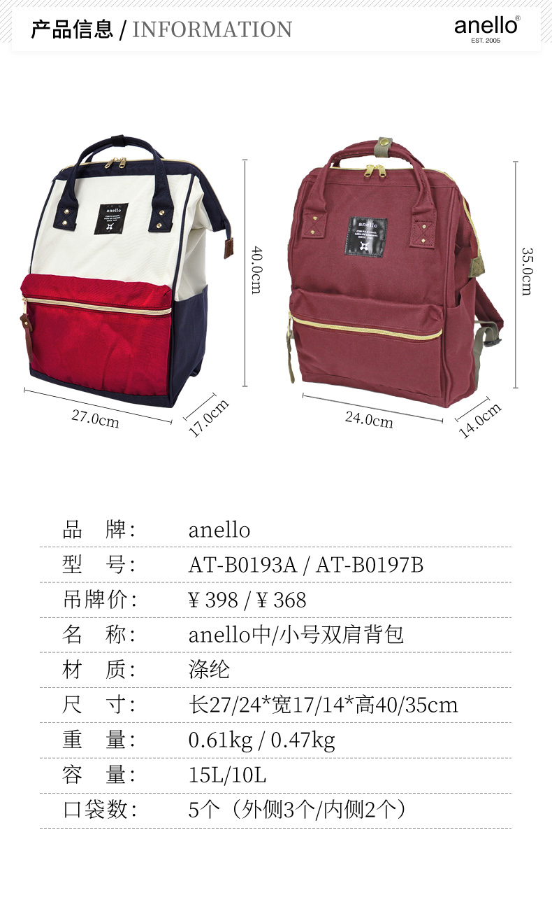 【一般贸易】 anello经典款式双肩包B0197B(小号)迷彩色