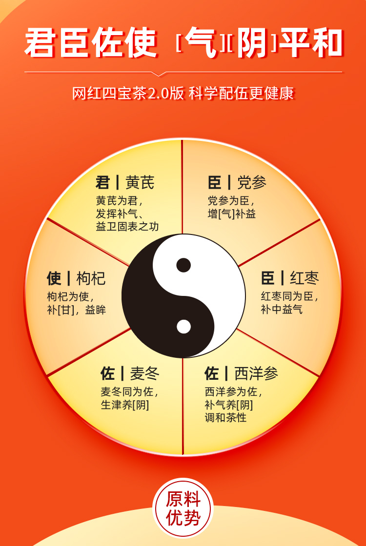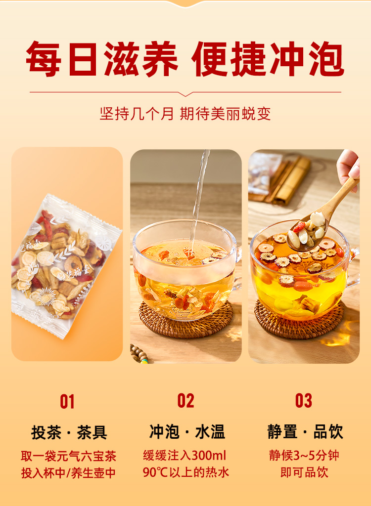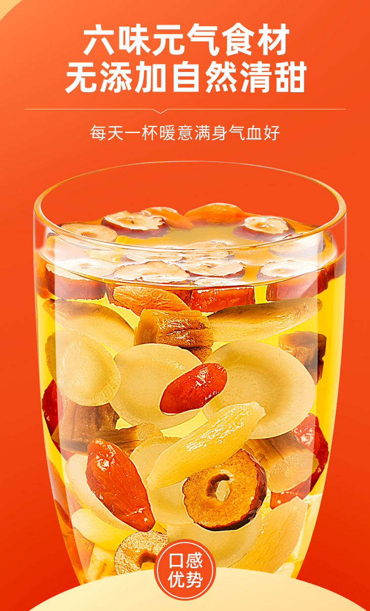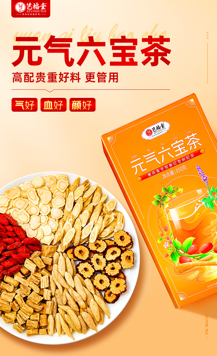 艺福堂元气六宝茶(黄芪麦冬党参红枣枸杞茶)150克/盒(W)