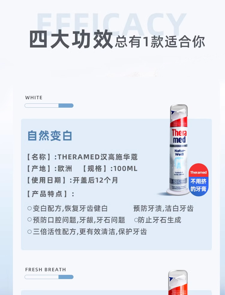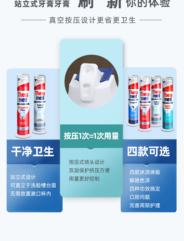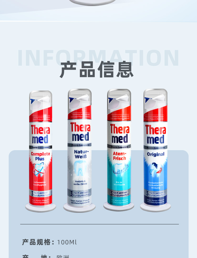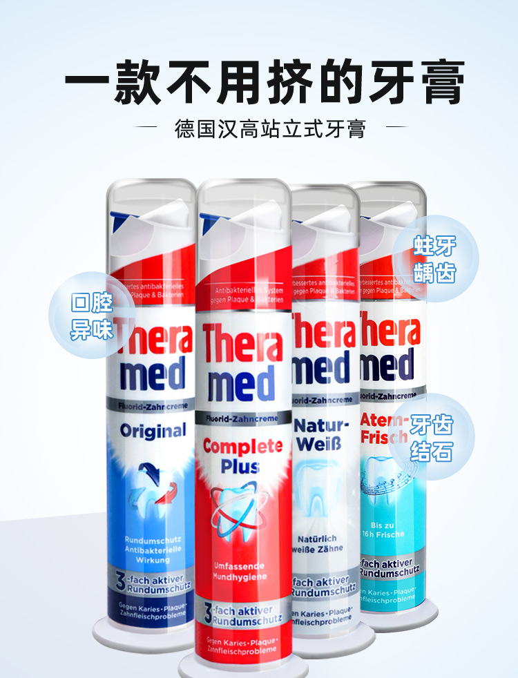 德国THERAMED立式牙膏100ml 解决7大口腔难题刷新你的“牙”体验 112109/112110/112254/120193