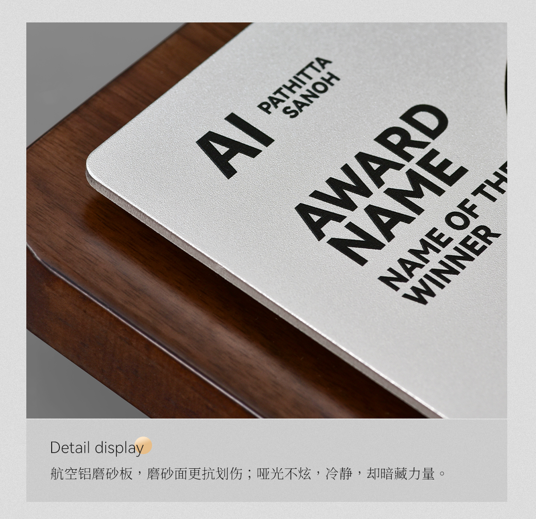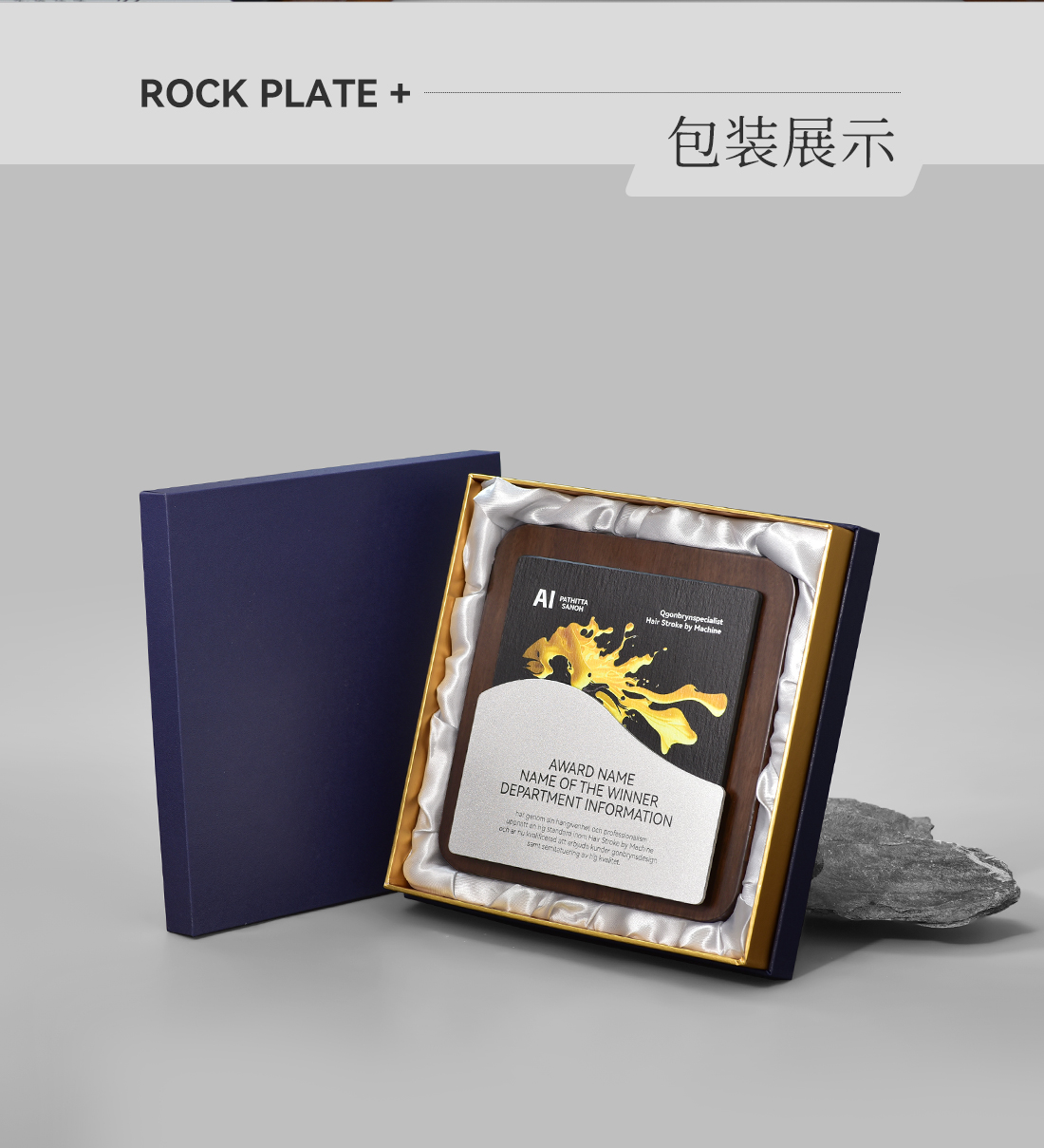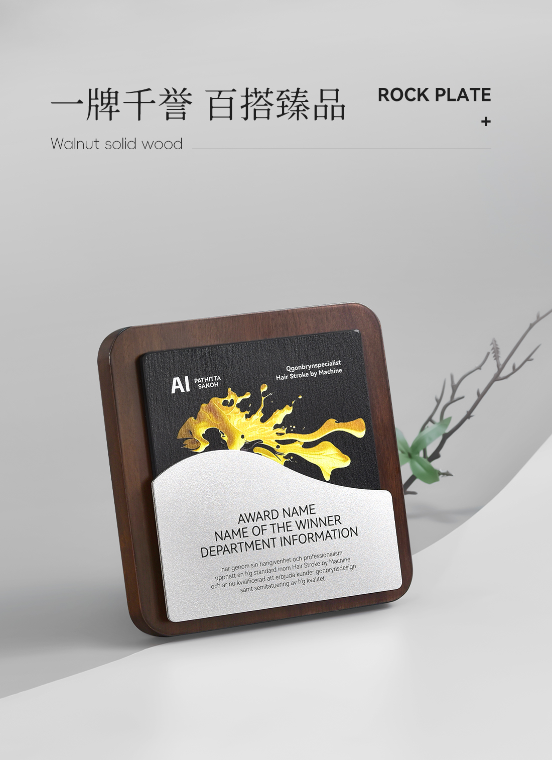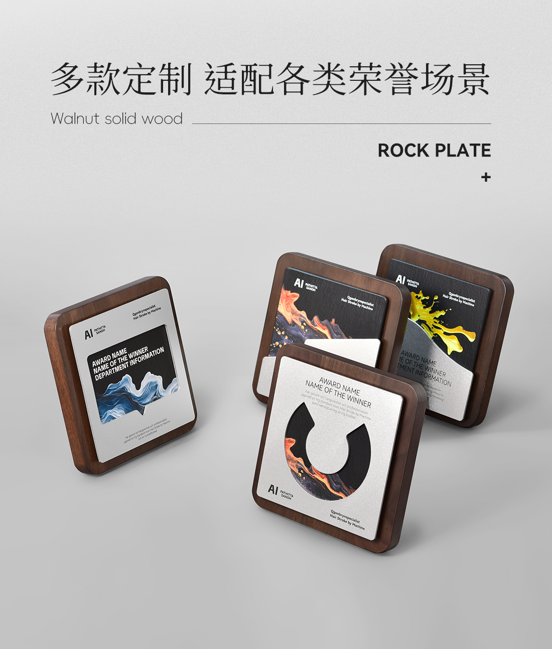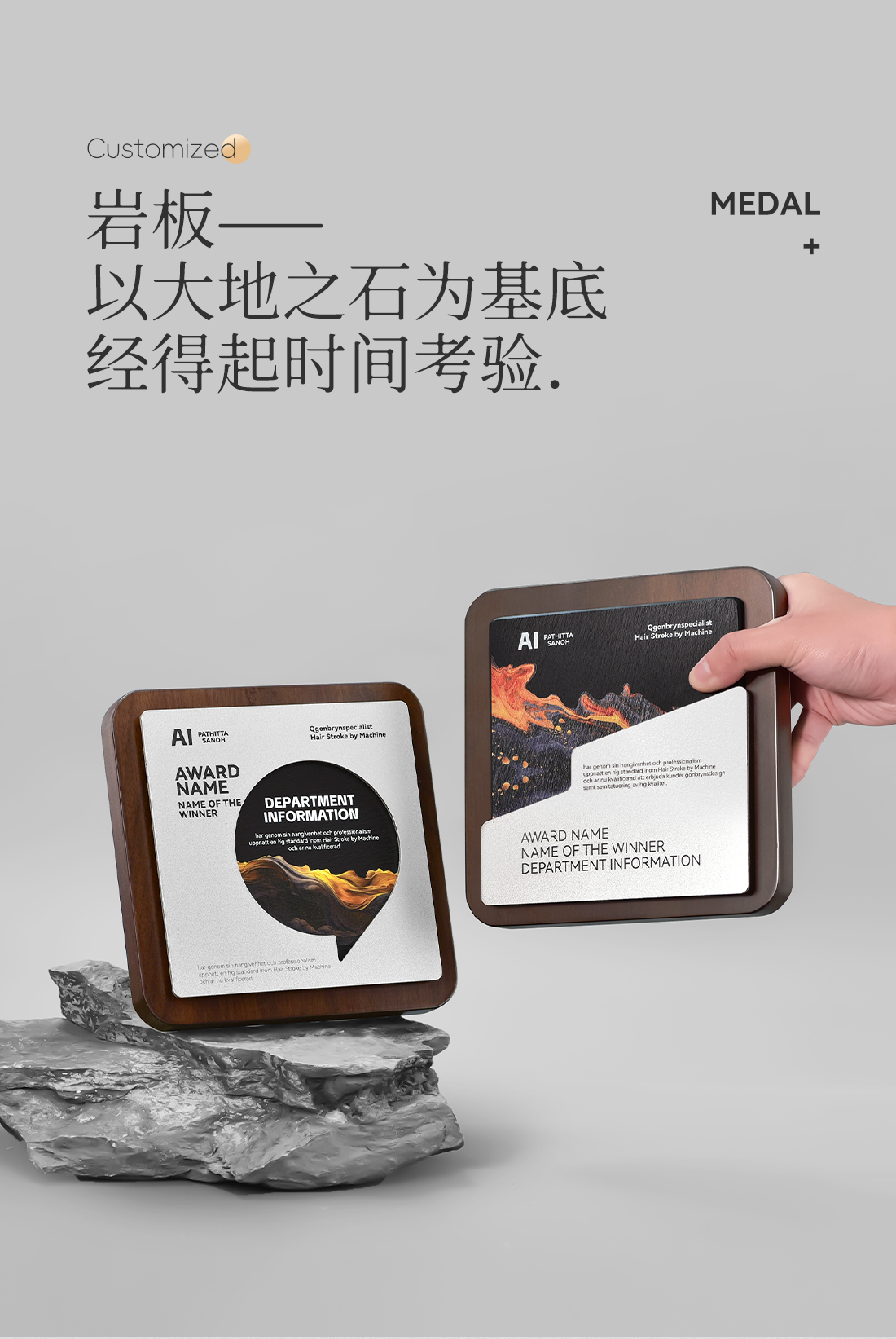 高档胡桃木岩板AI科技感奖牌企业嘉奖年会颁奖优秀员工纪念品牌匾