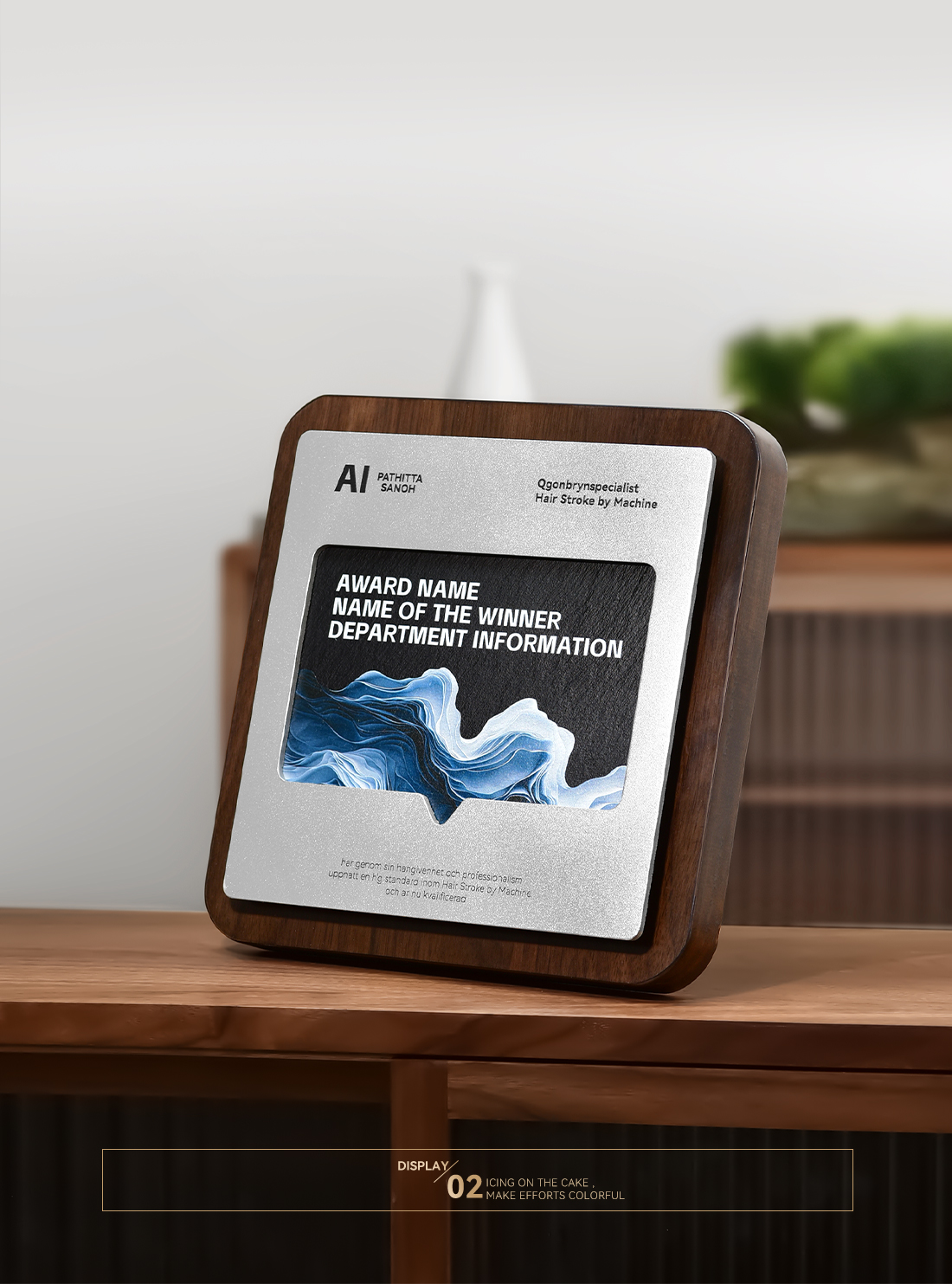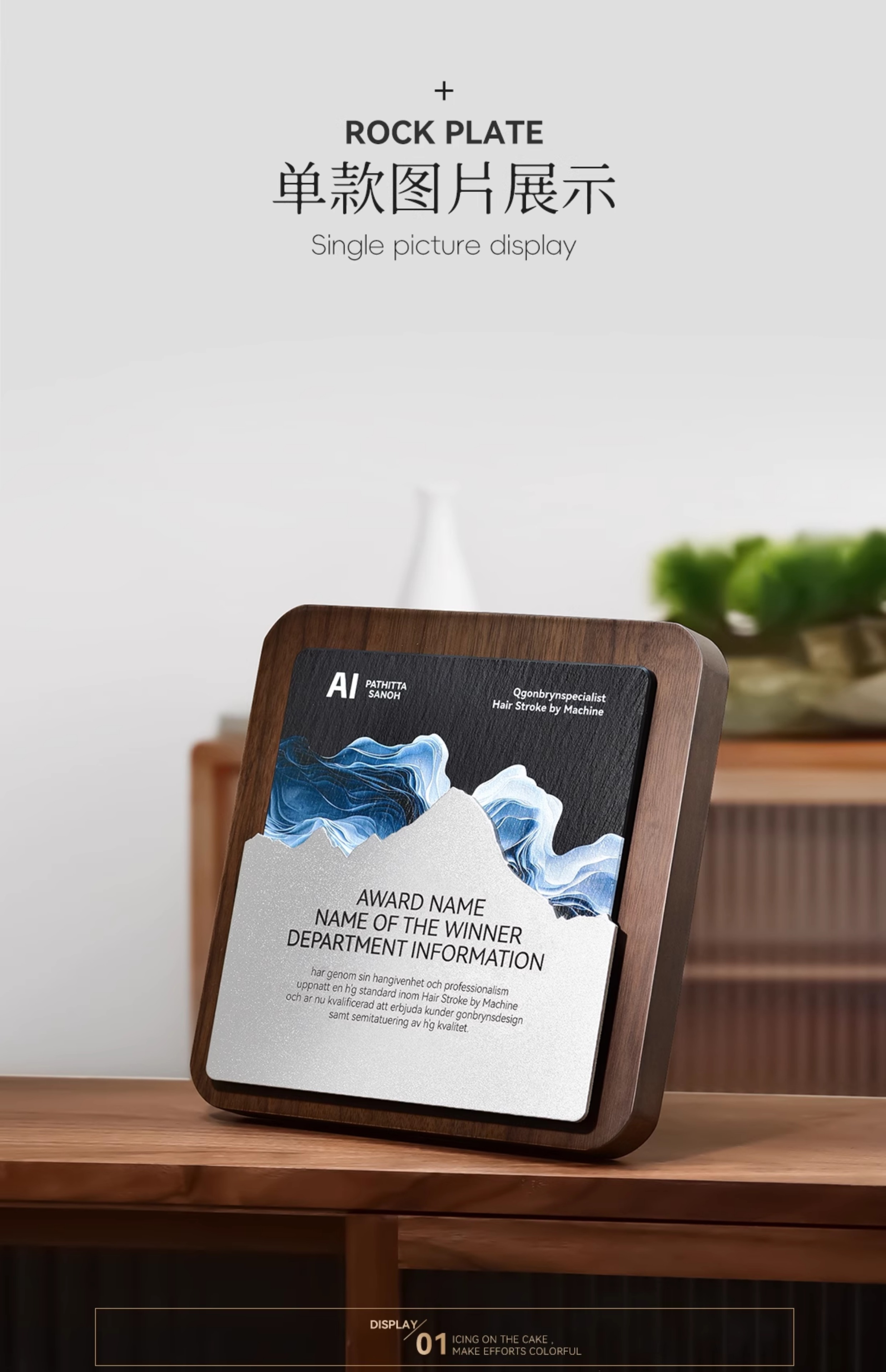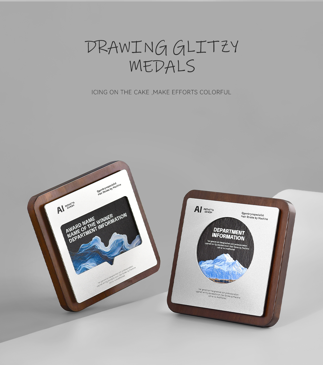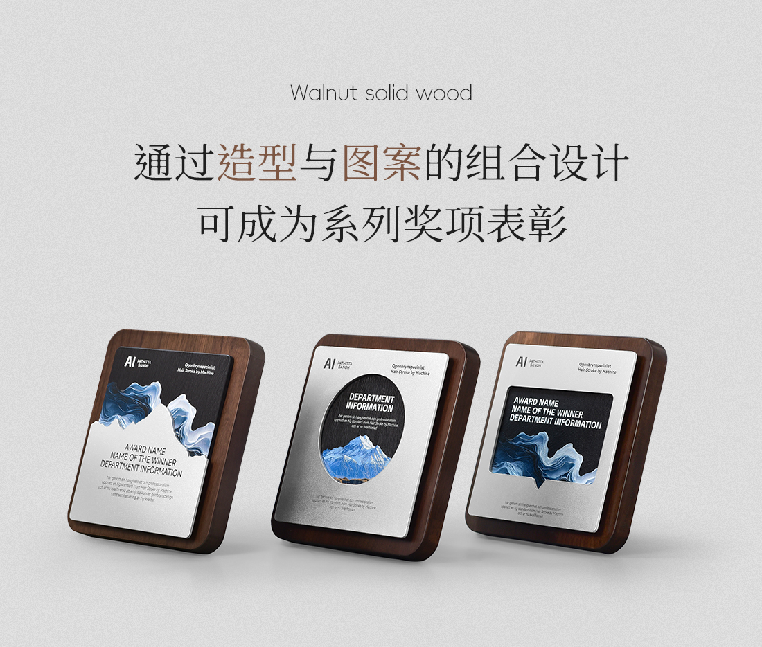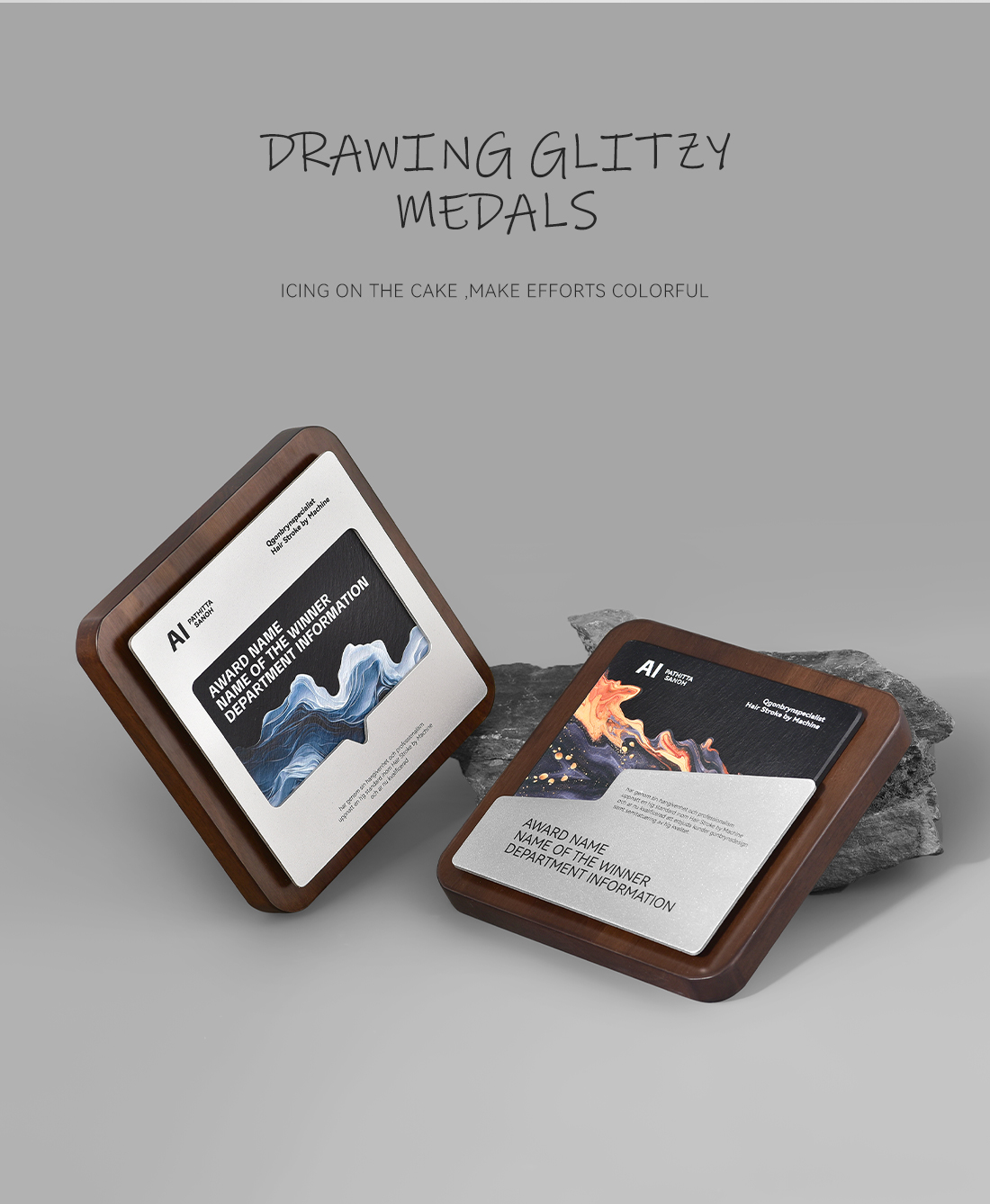高档胡桃木岩板AI科技感奖牌企业嘉奖年会颁奖优秀员工纪念品牌匾