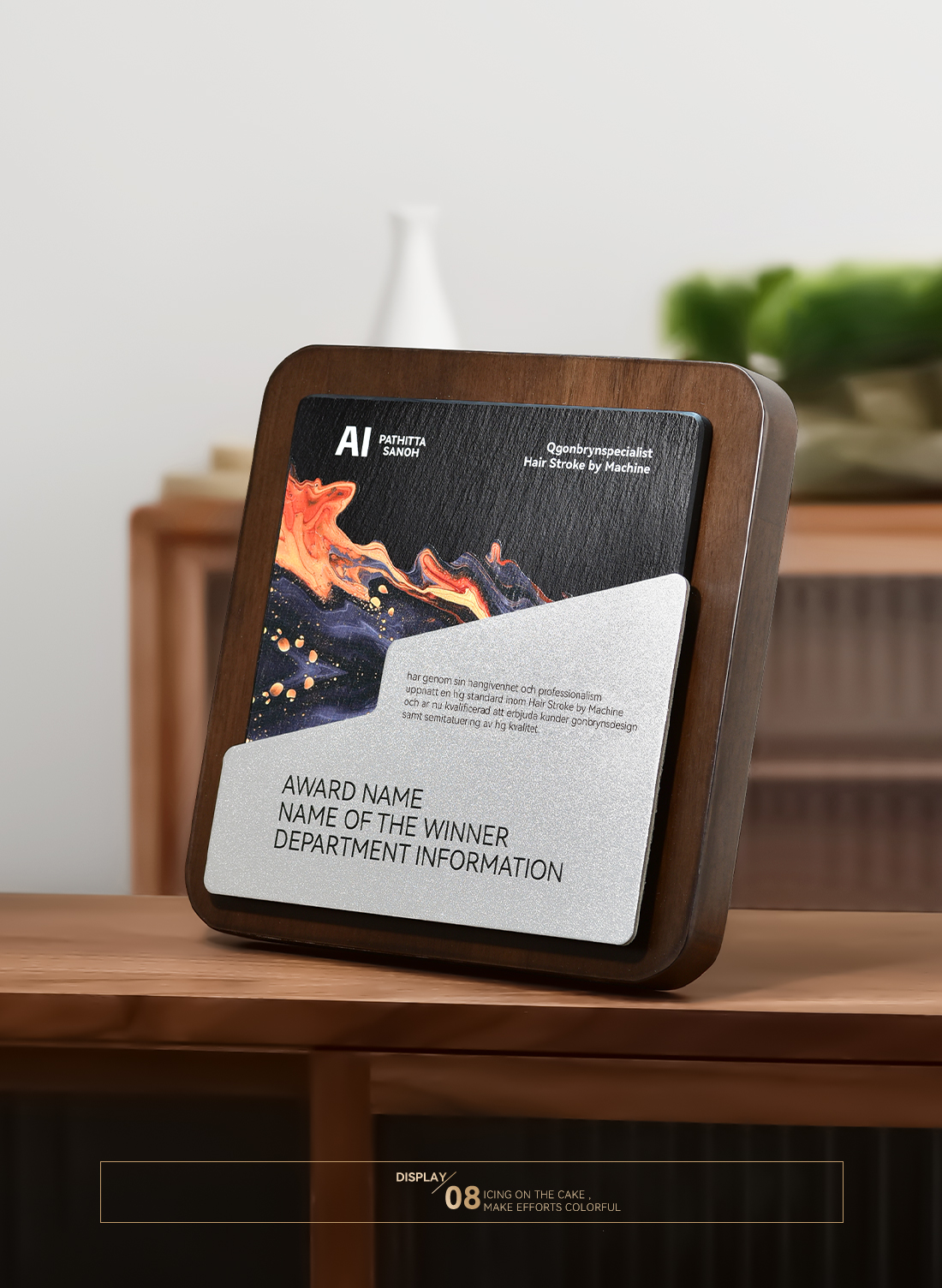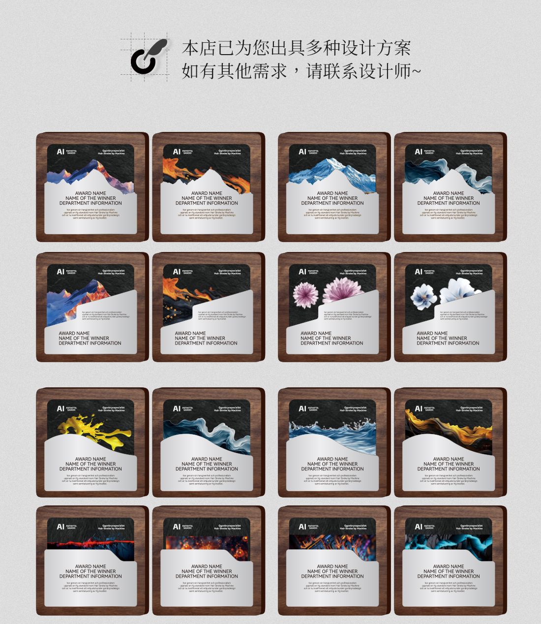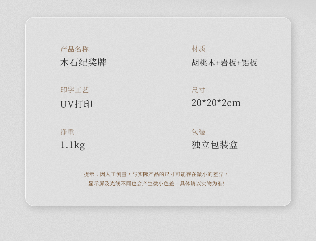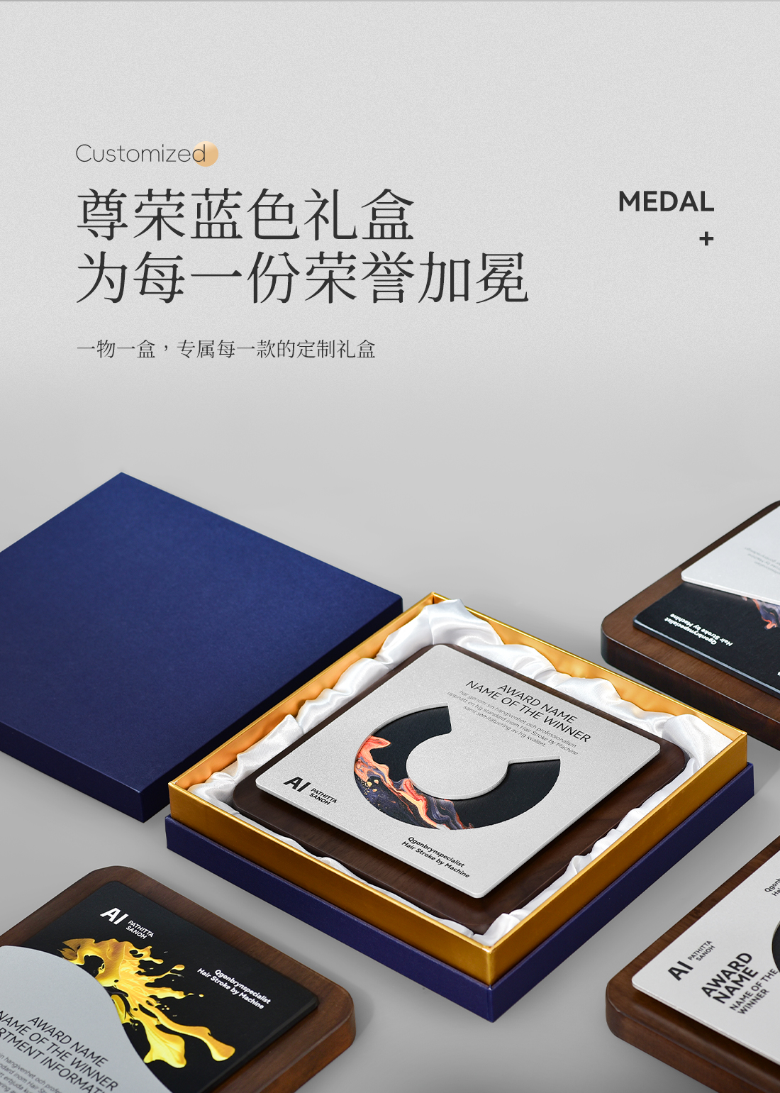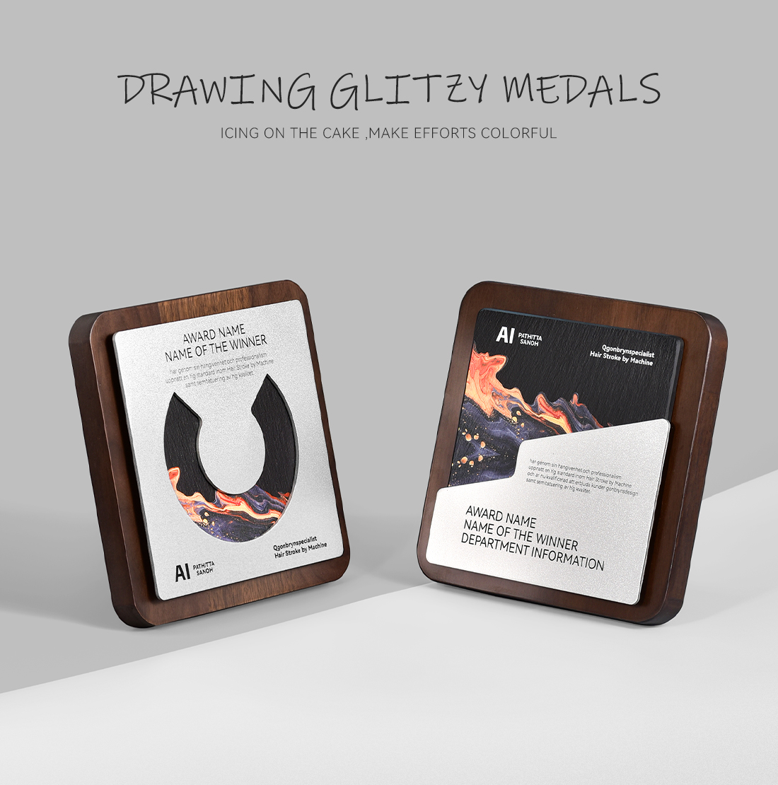 高档胡桃木岩板AI科技感奖牌企业嘉奖年会颁奖优秀员工纪念品牌匾