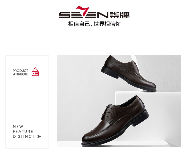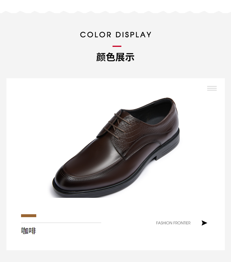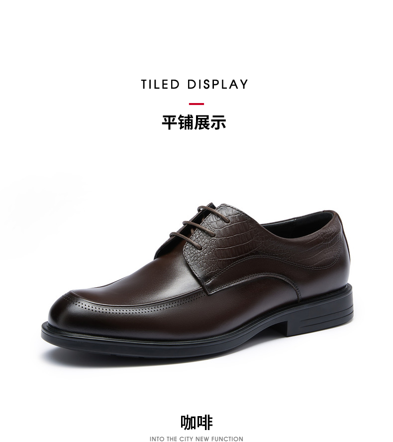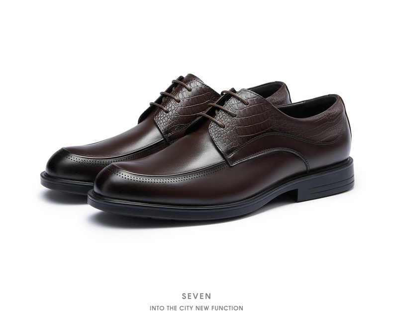 柒牌皮鞋男款春季商务正装休闲真皮男鞋男士结婚新郎伴郎低跟鞋子 126X70230
