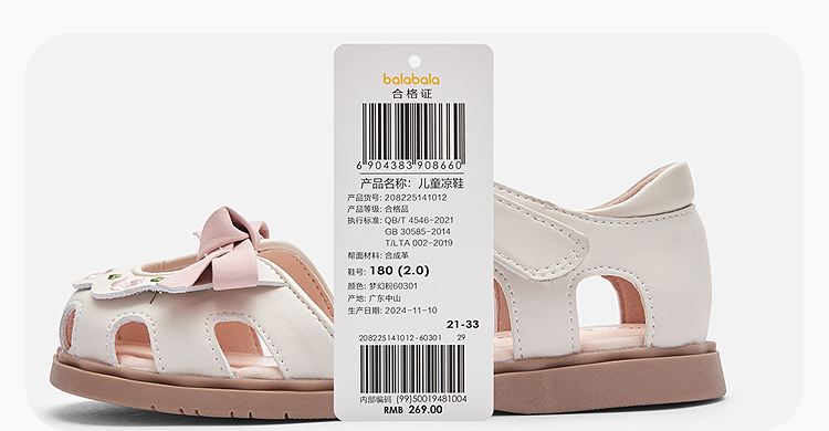 巴拉巴拉童鞋儿童凉鞋女童鞋子2025夏季新款公主鞋文艺国风平底鞋