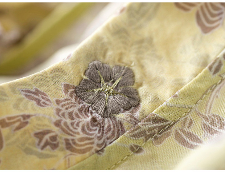 【林栖设计小店】柠檬黄雪纺印花立领衬衣喇叭袖度假上衣秋季女装新品