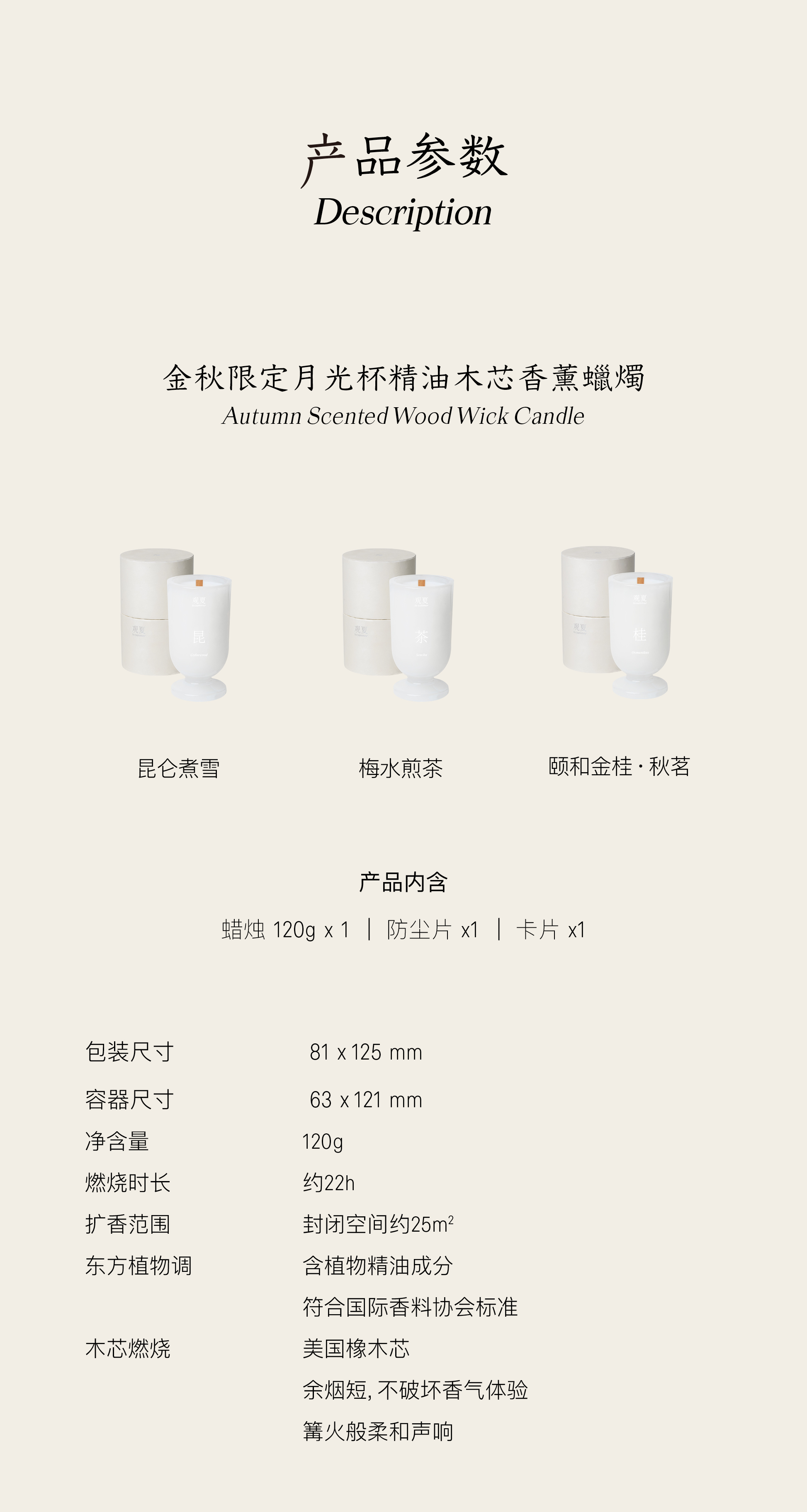 月光杯精油木芯香薰蜡烛—颐和金桂·秋茗 | 昆仑煮雪 | 梅水煎茶