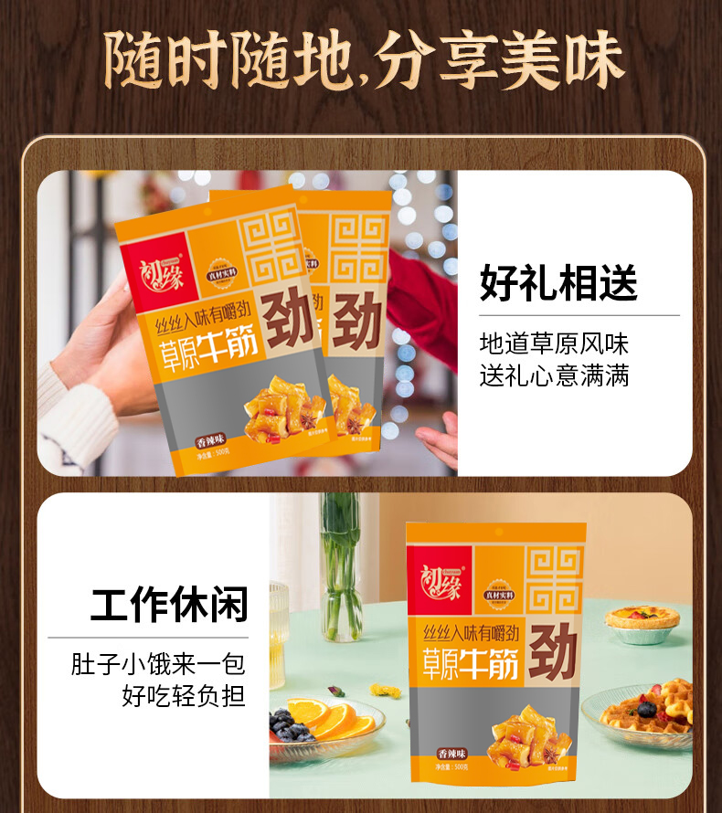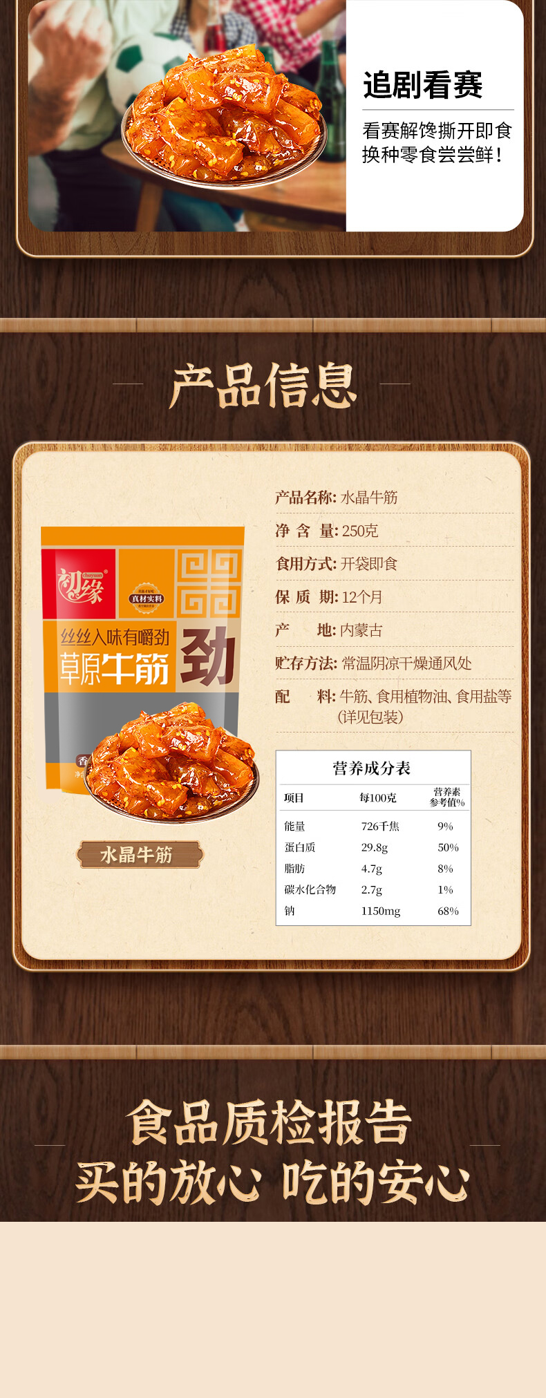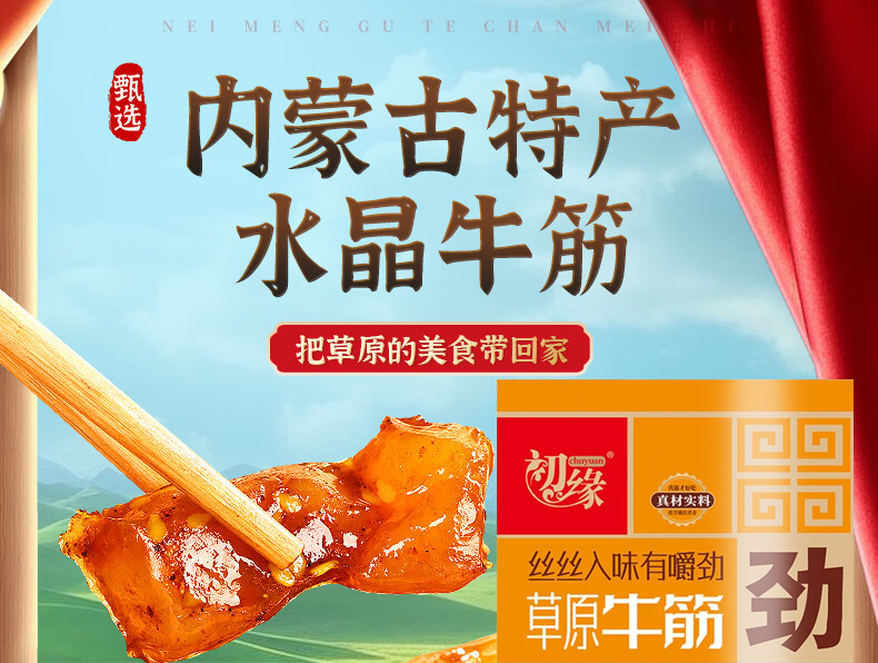 【弹韧暴击】敕勒川初缘草原秘制牛筋|游牧世代手作 高胶原蛋白零食 烧烤味/香辣味 250g/袋