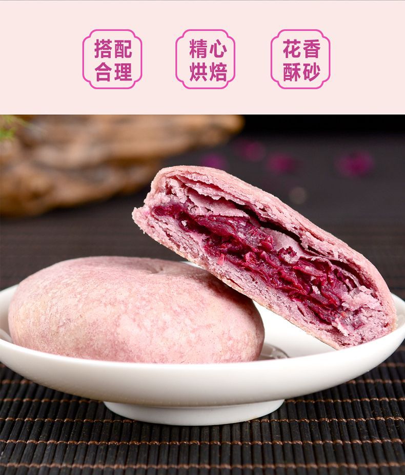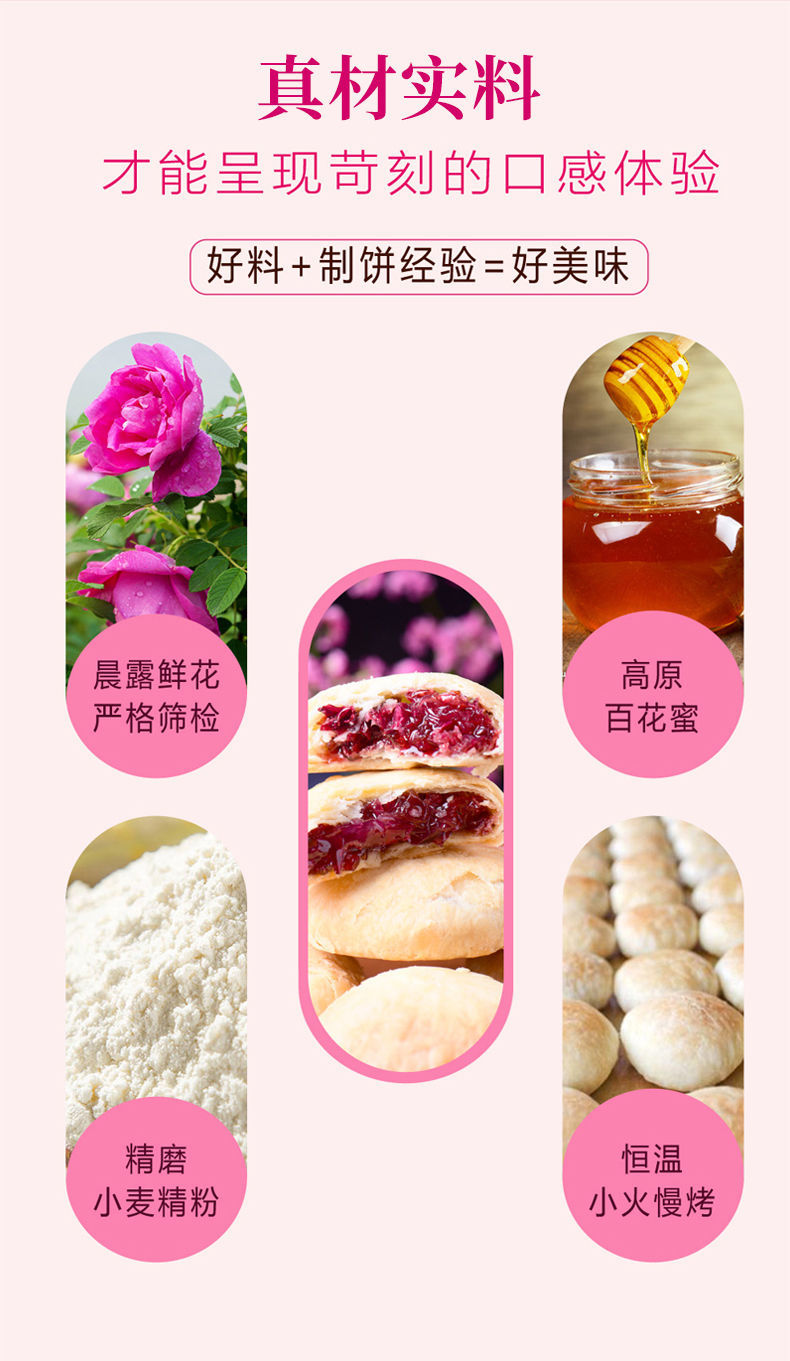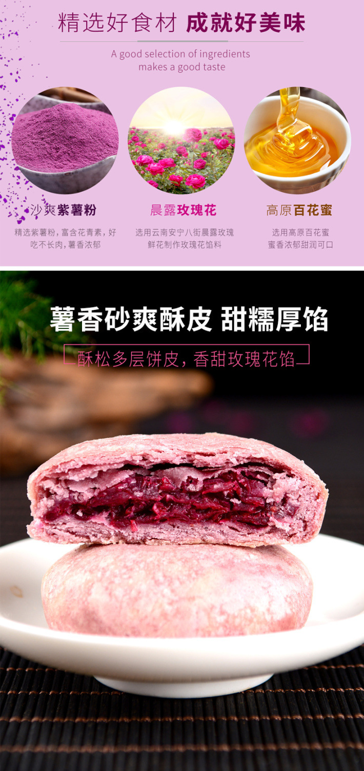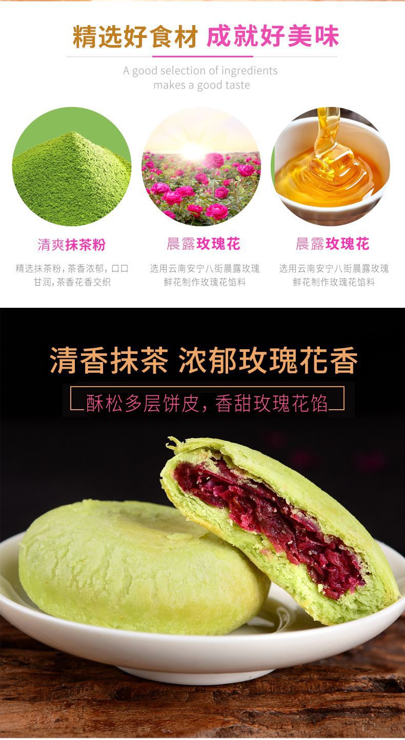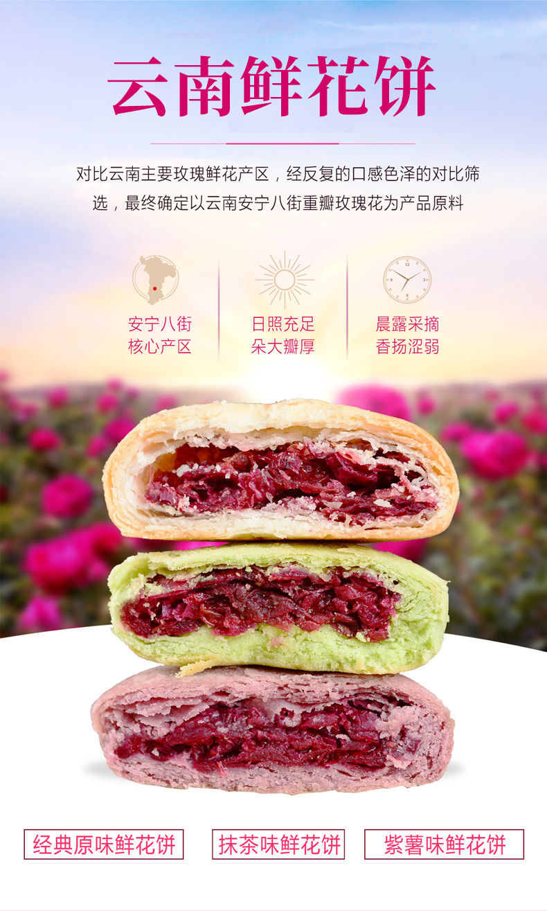 赠送手提袋【饼皮酥松!色泽鲜艳】花馅饱满,玫瑰鲜花饼礼盒奶香玫瑰饼抹茶紫薯传统糕点零食小吃中秋送礼。ra
