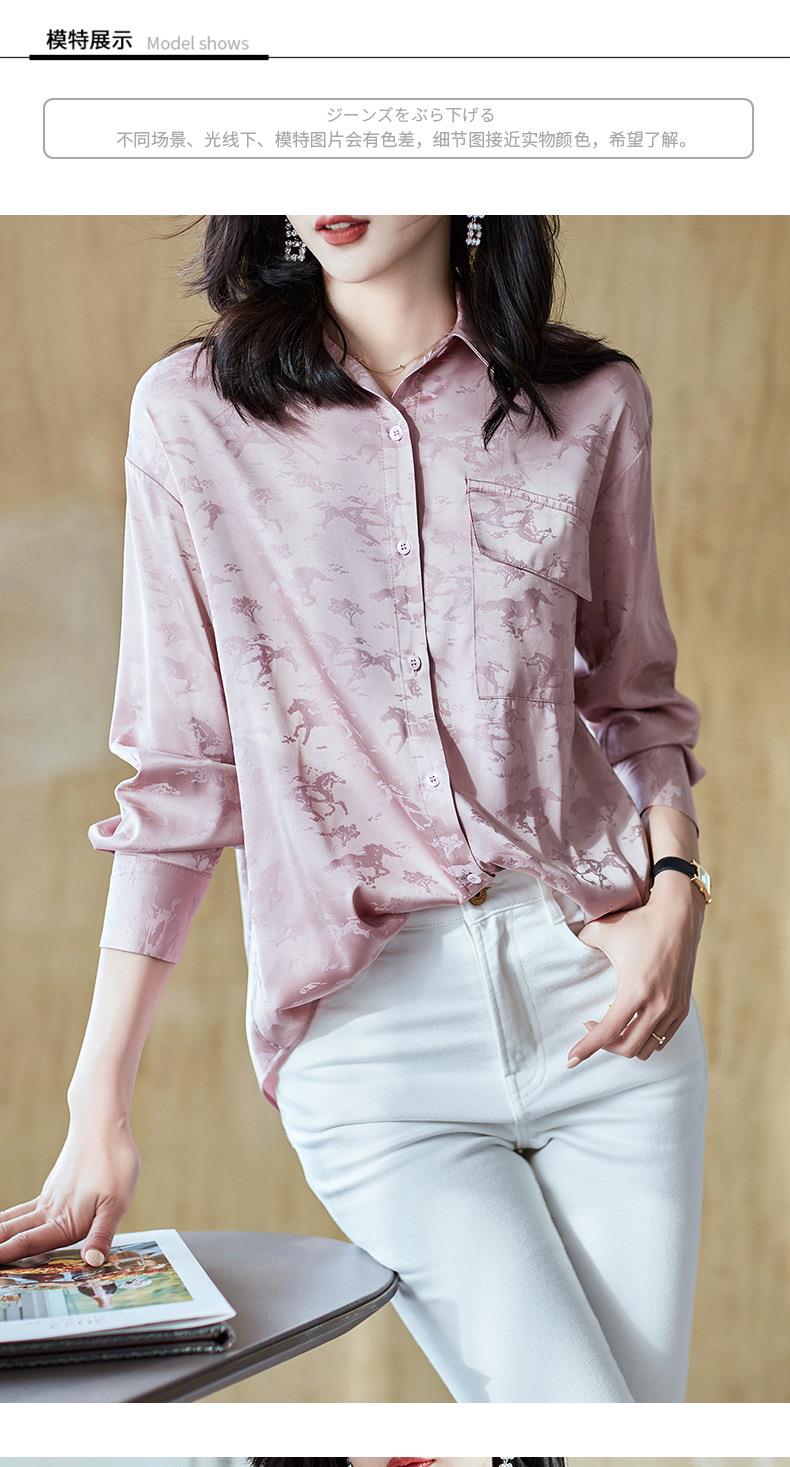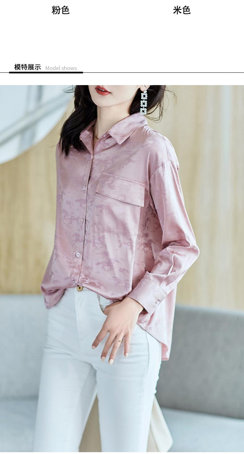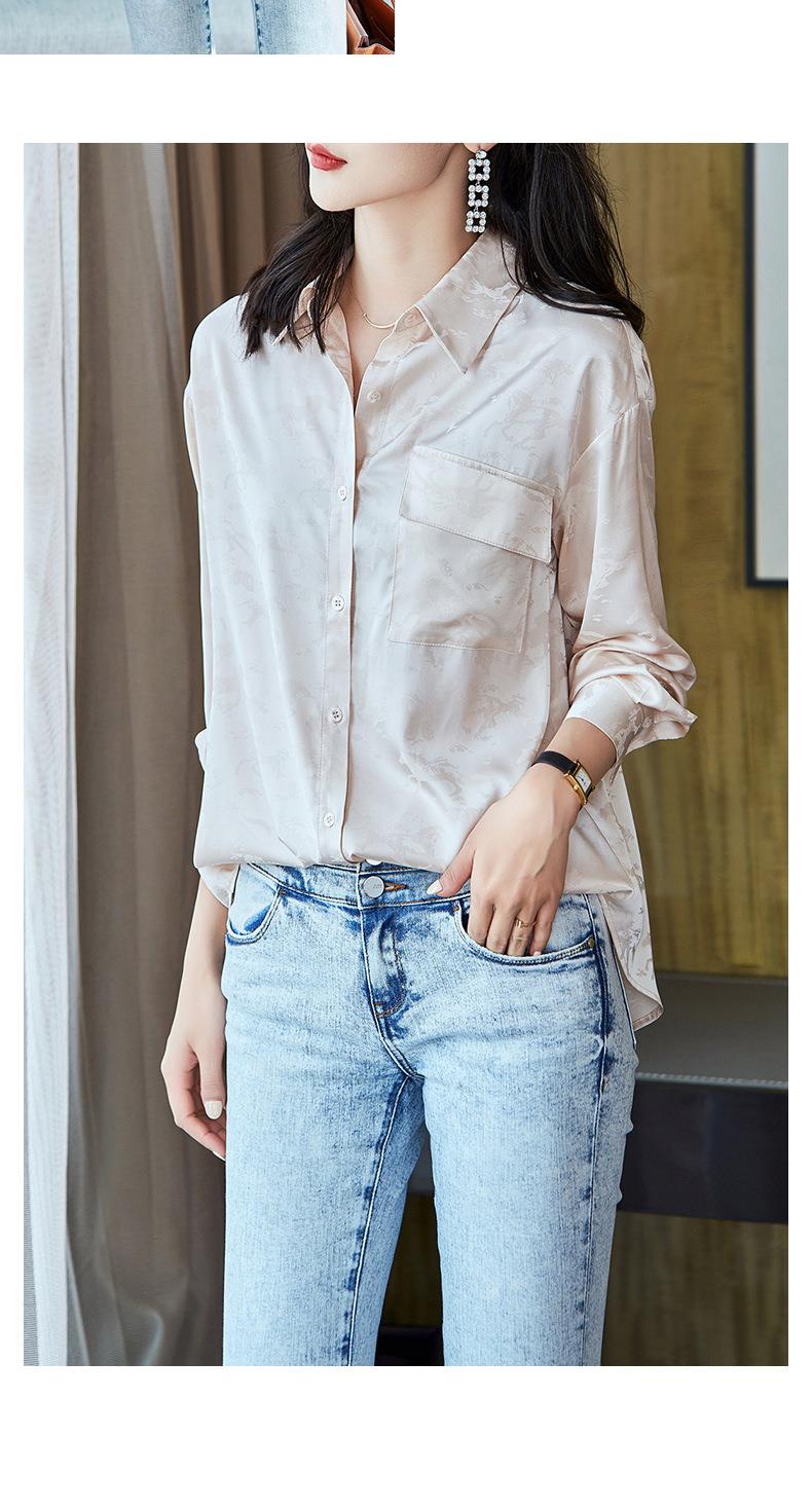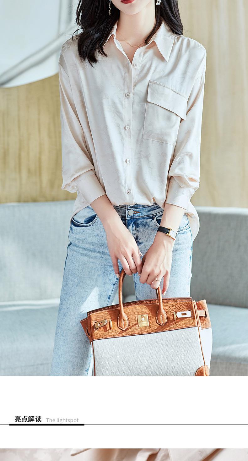 2023秋装新款衬衫女长袖宽松雪纺衫口袋女士衬衣A2556
