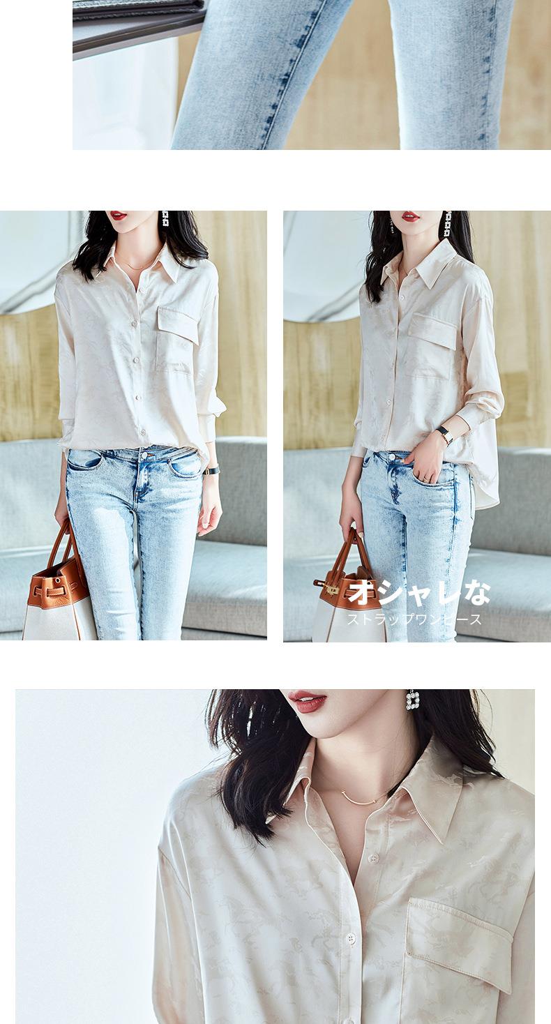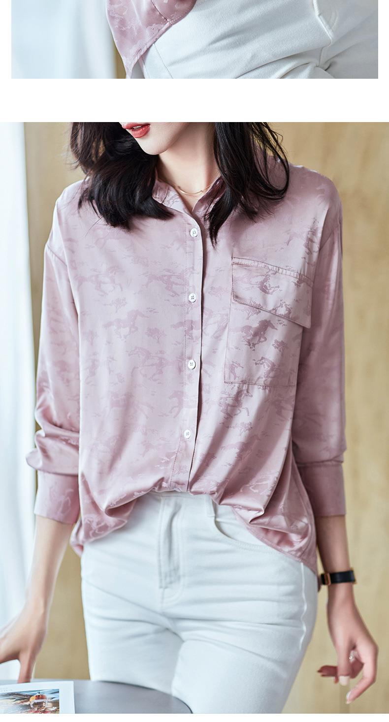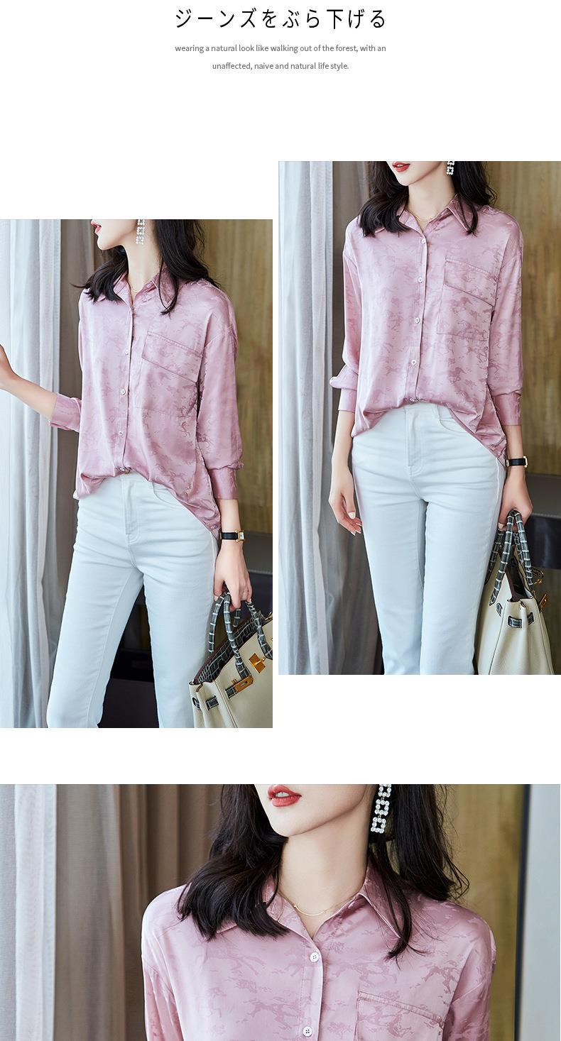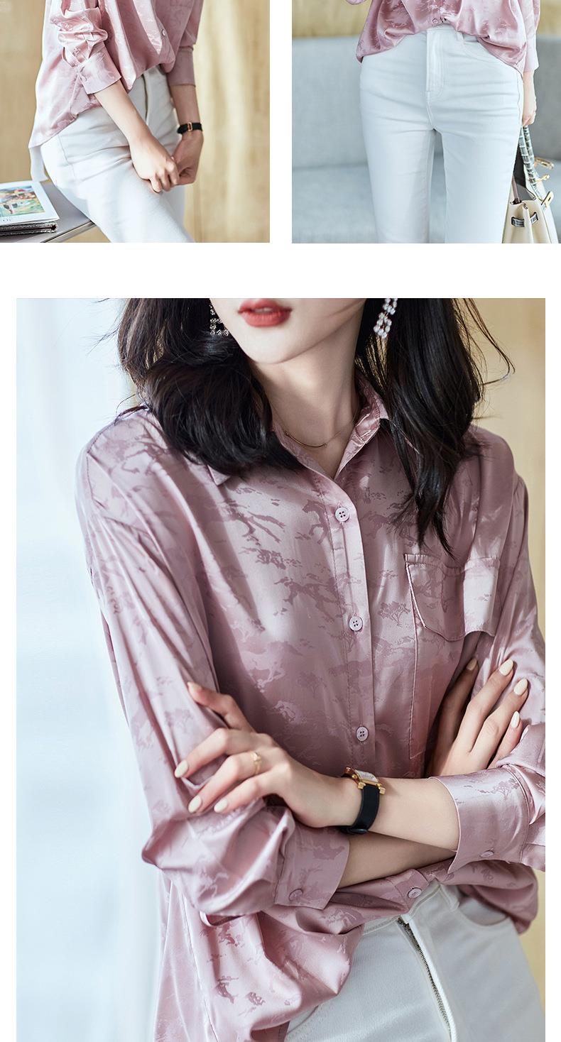 2023秋装新款衬衫女长袖宽松雪纺衫口袋女士衬衣A2556