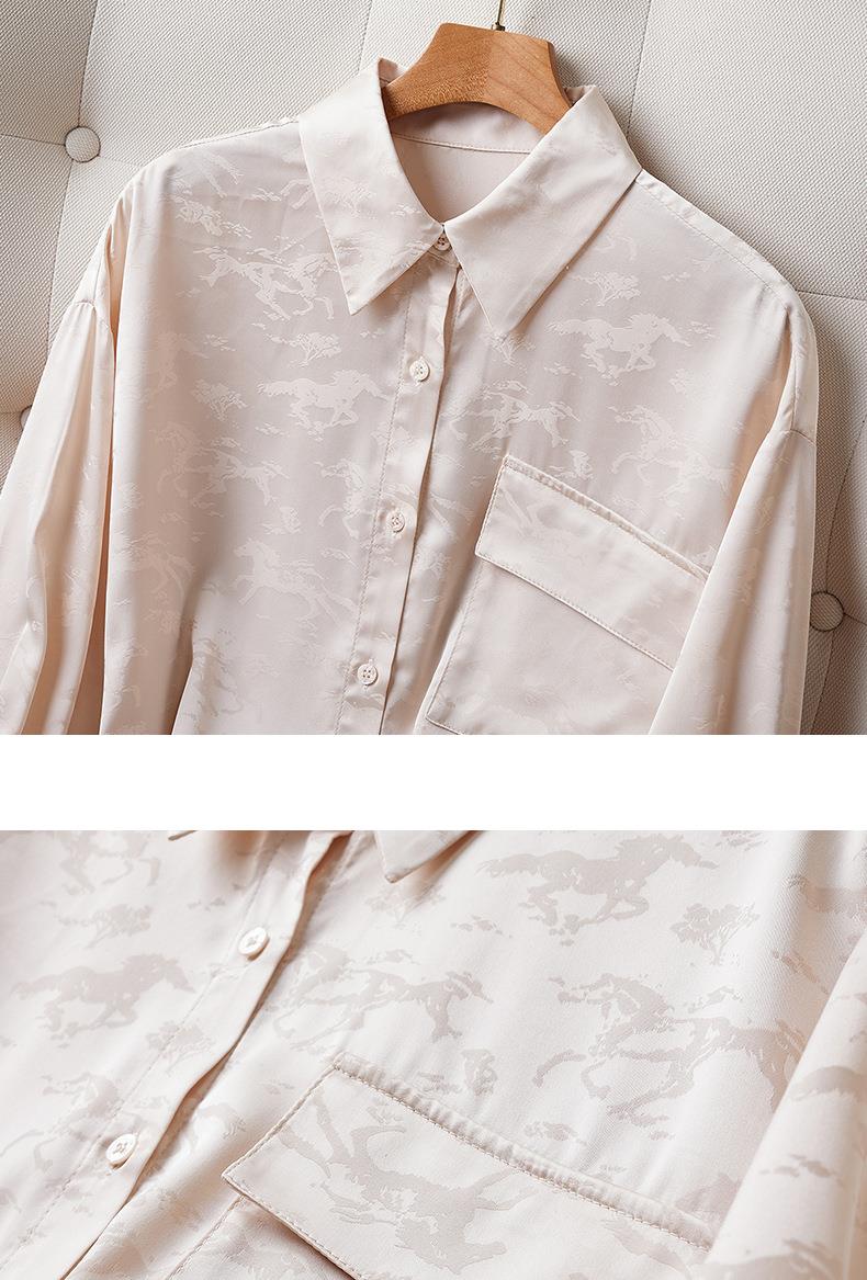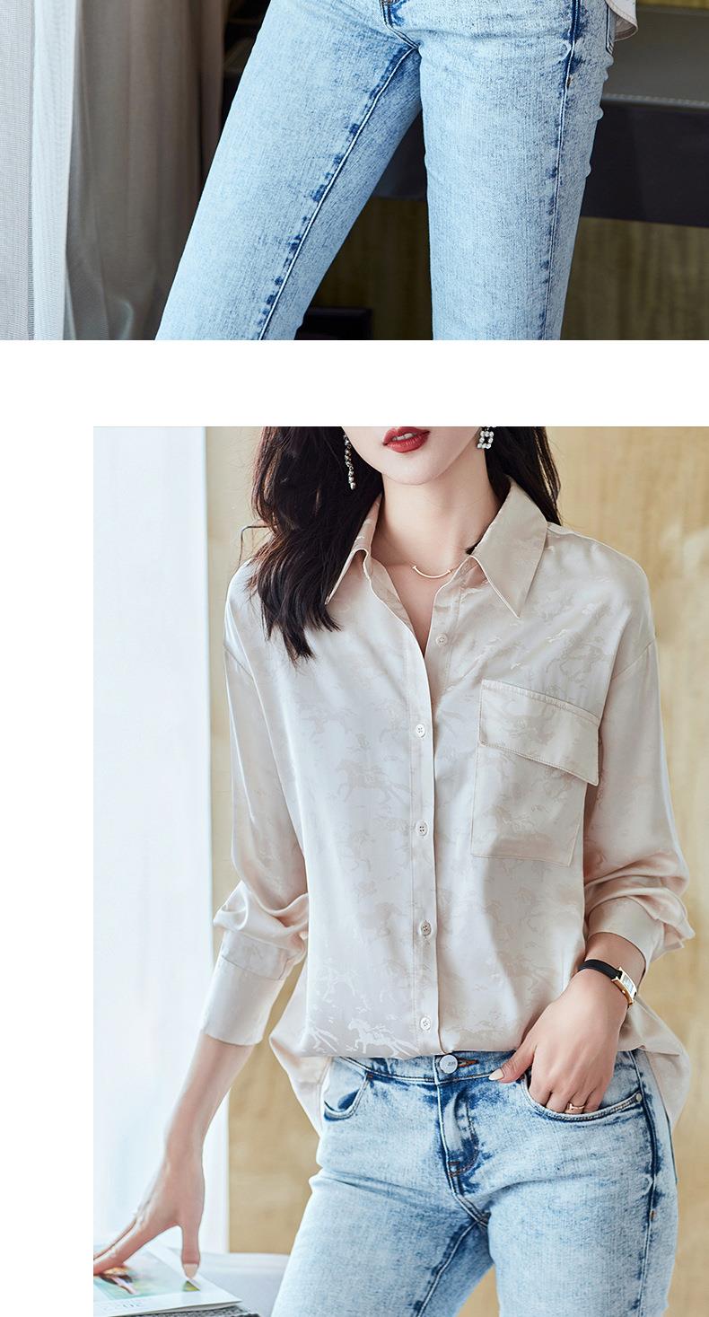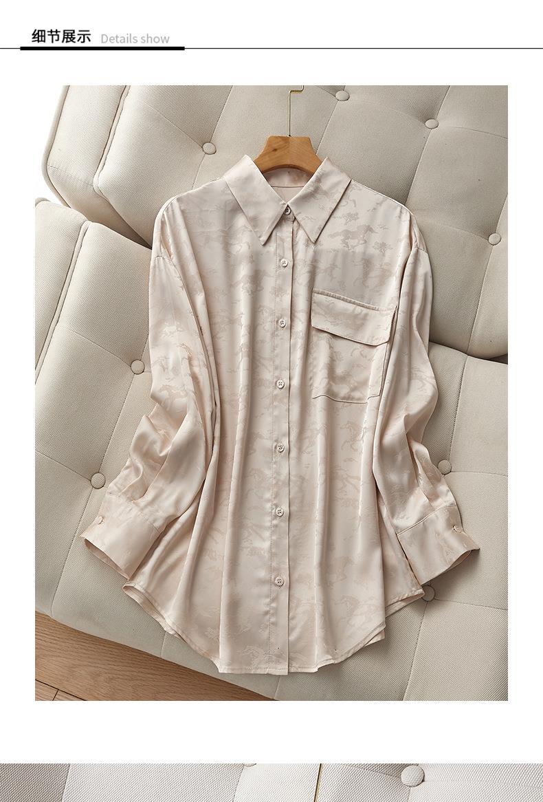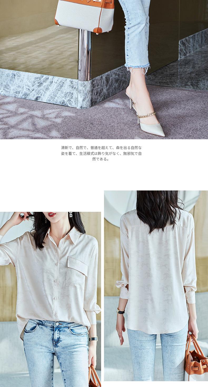 2023秋装新款衬衫女长袖宽松雪纺衫口袋女士衬衣A2556