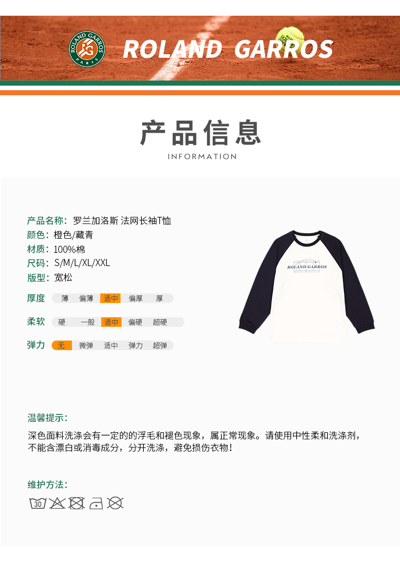 罗兰加洛斯法网男女春季新款长袖T恤情侣套头卫衣运动网球上衣