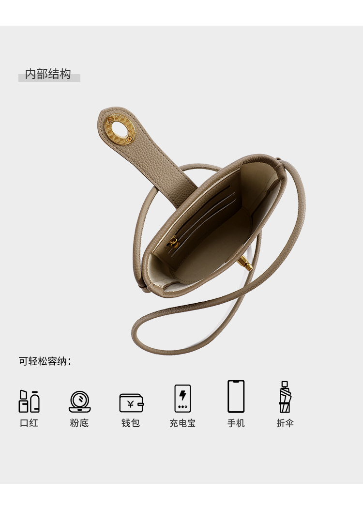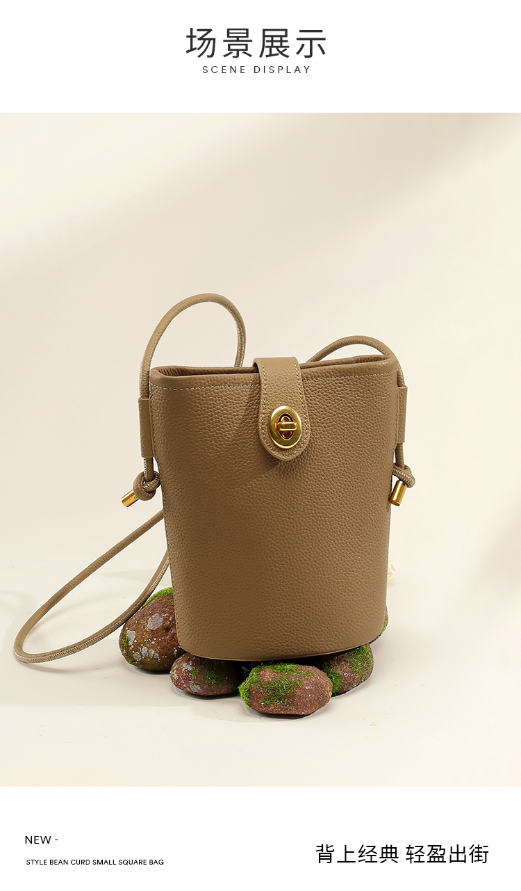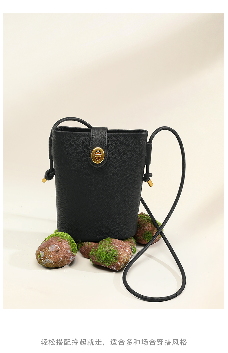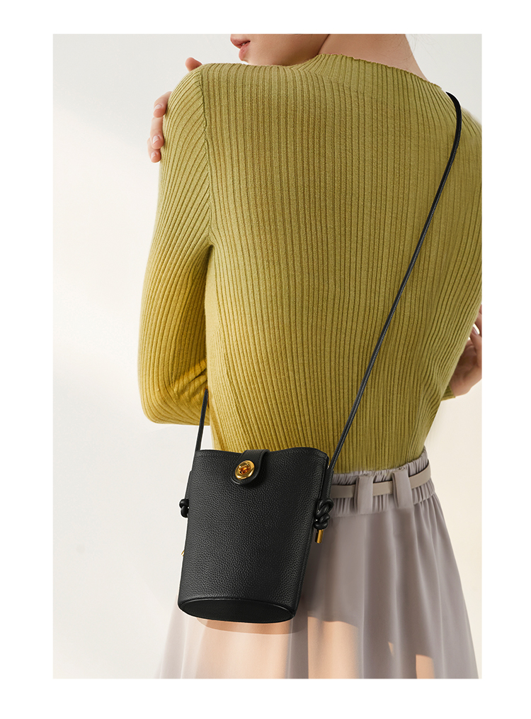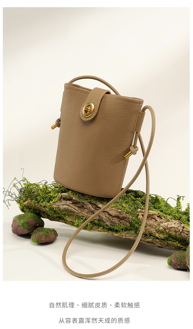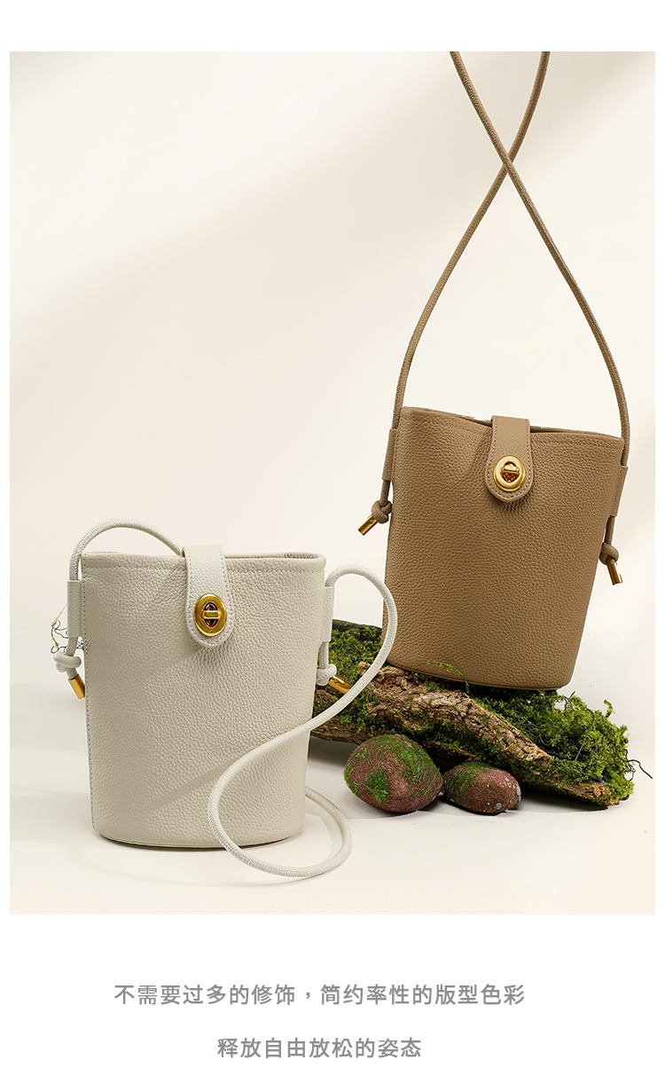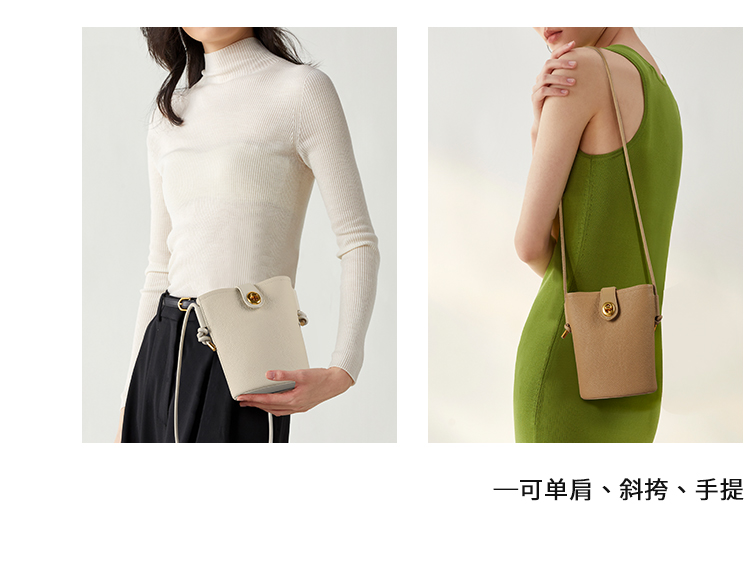 星期六软纹牛皮斜跨手提小桶包SS3121A136