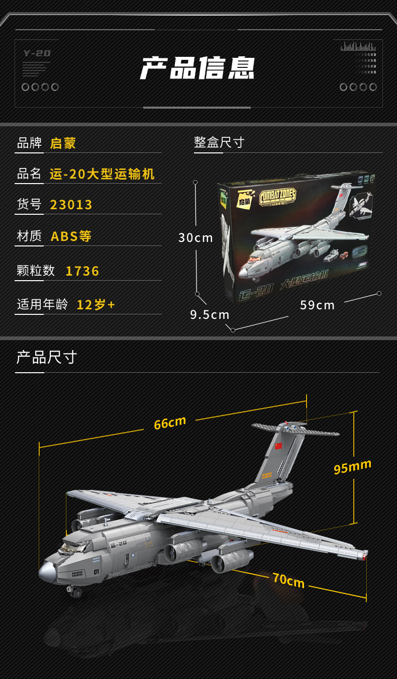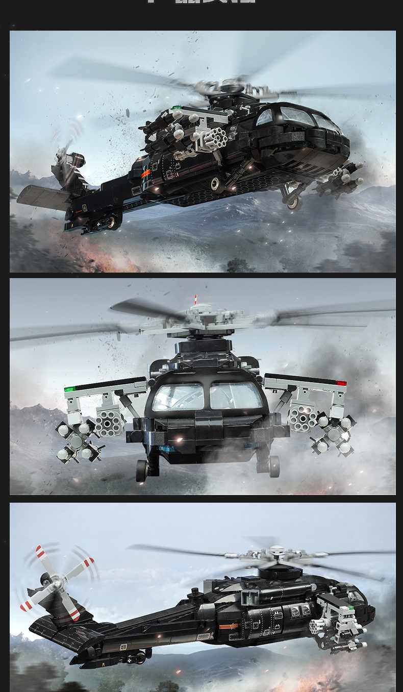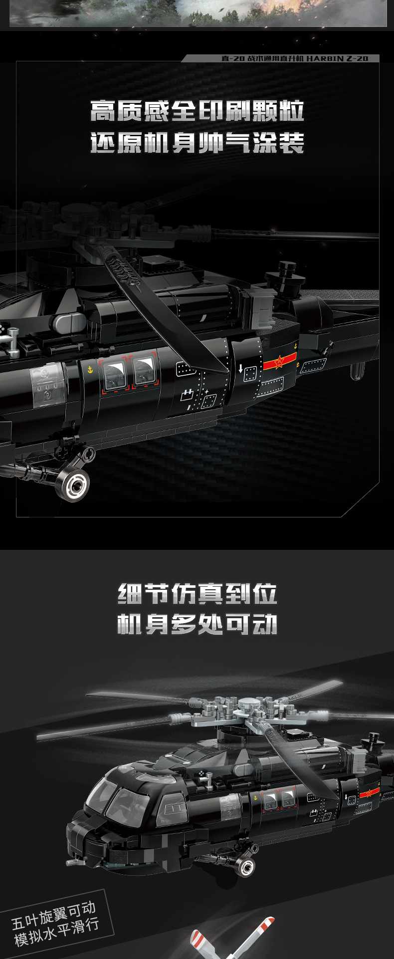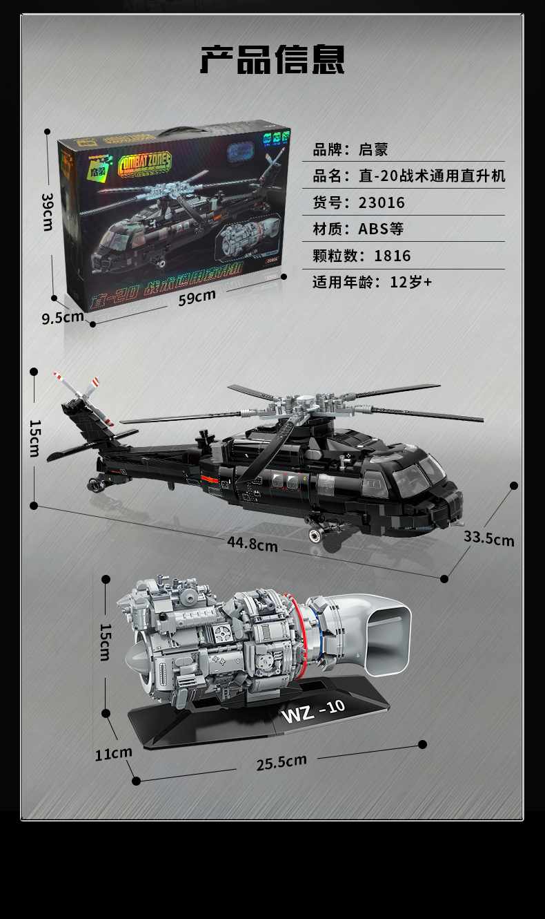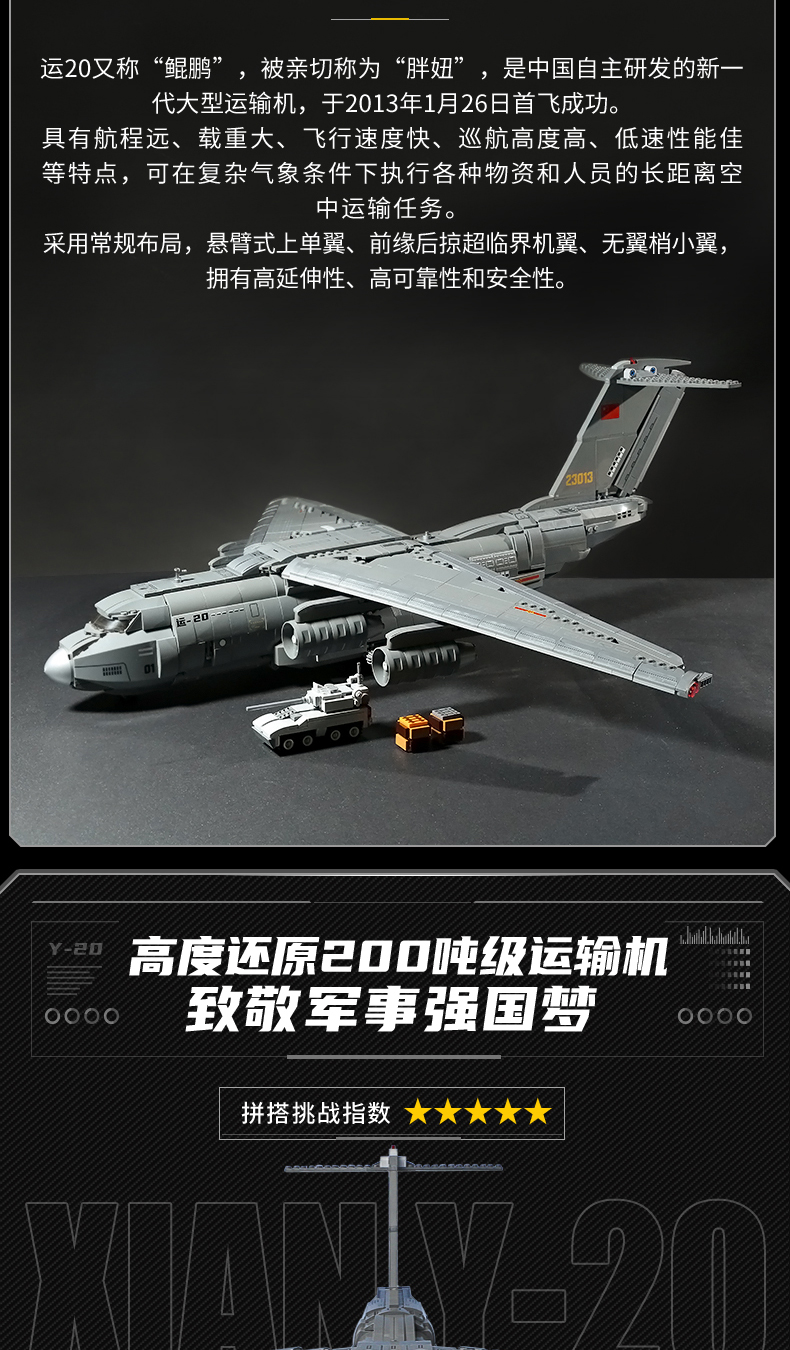 Enlighten启蒙积木 直-20战术通用直升机/歼-20隐形战斗机/运-20大型运输机