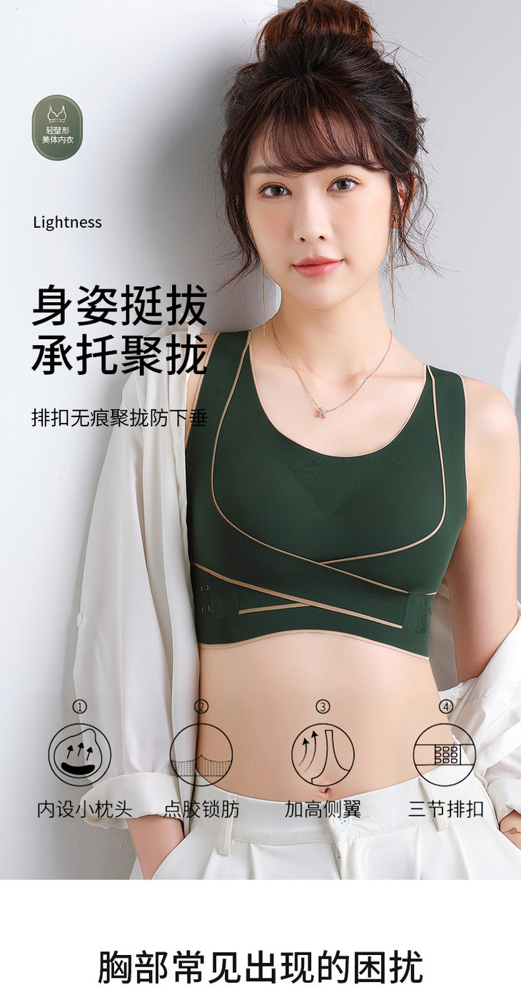 【交叉侧扣运动背心】女内搭带胸垫聚拢无钢圈内衣美背收副乳运动文胸
