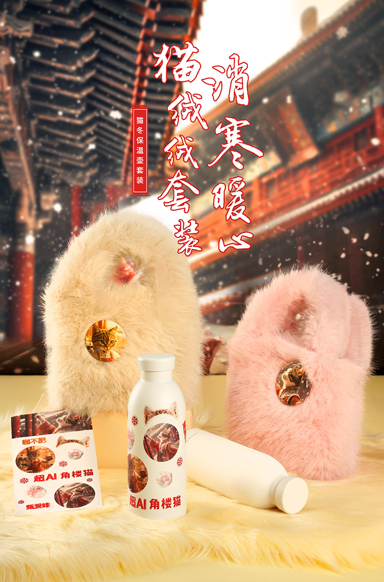 角楼咖啡猫冬保温壶套装四件套