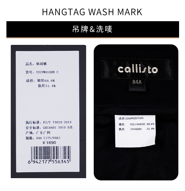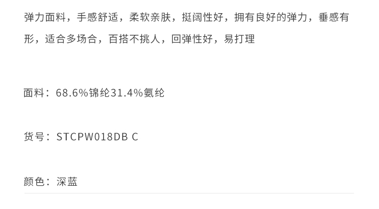 callisto深蓝弹力混纺休闲裤 STCPW018C