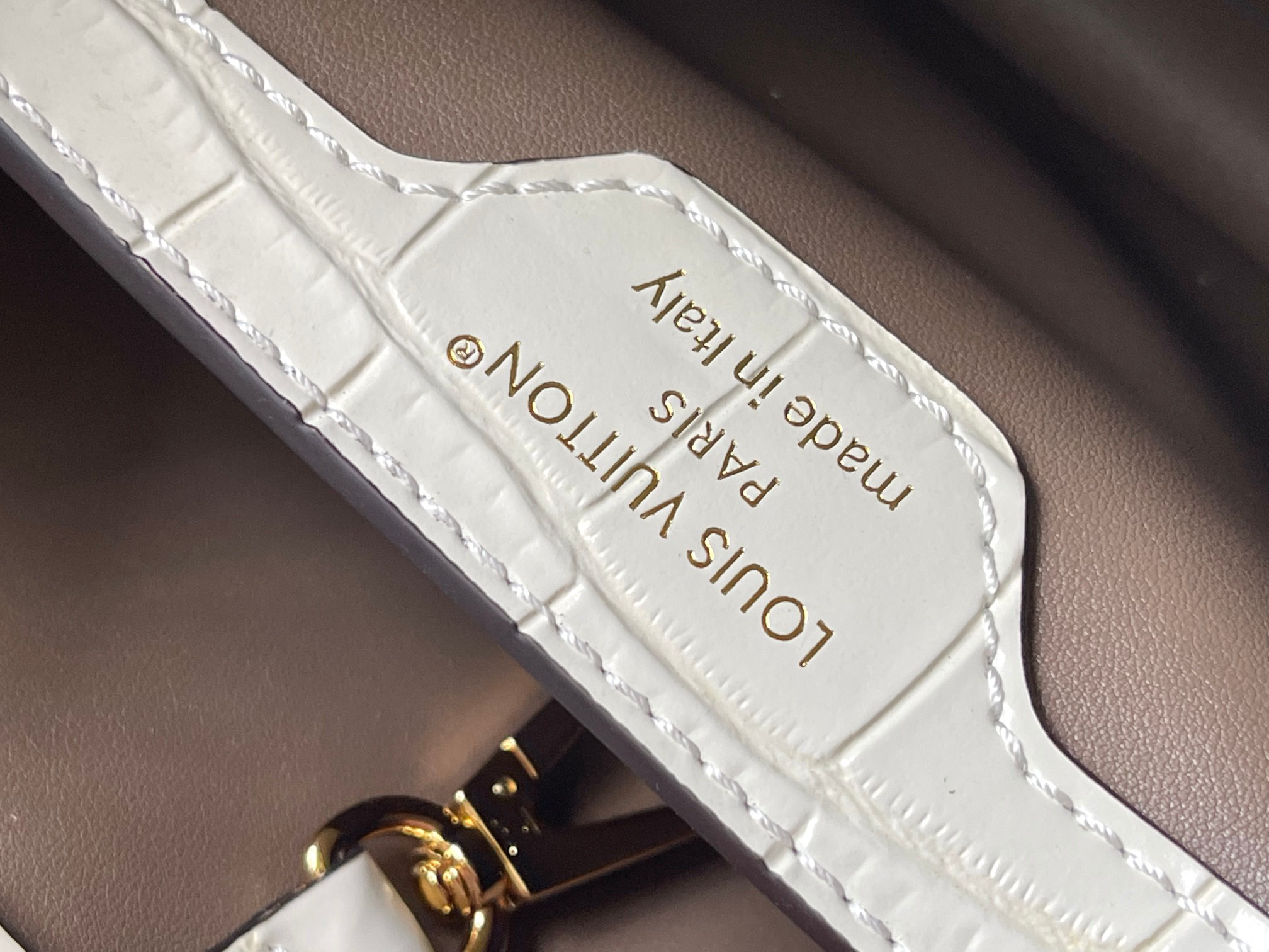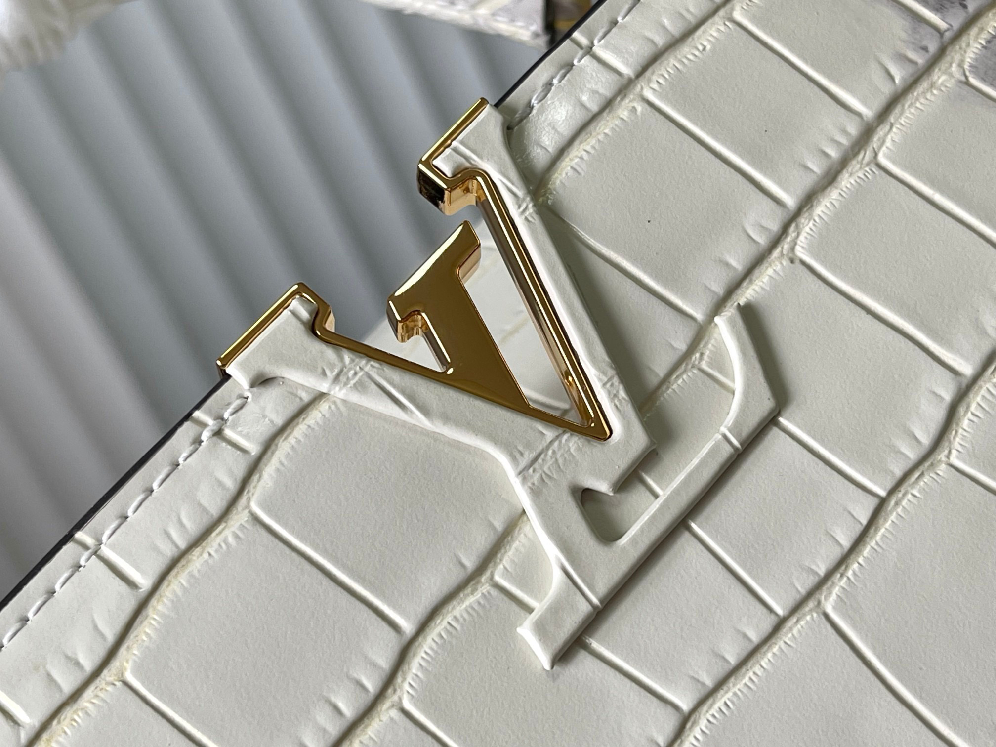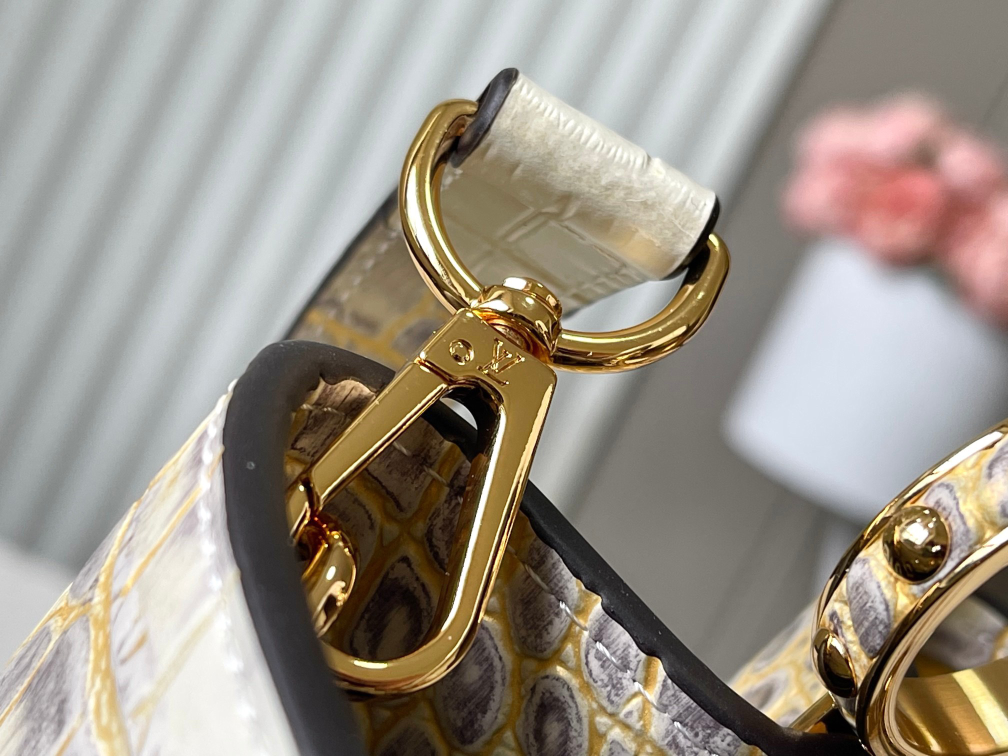 秋冬特惠💰1600 渠道级LV 新品 te级LV N93163/M48865喜马拉雅鳄鱼纹 此款珍贵的Capucines手袋由鳄鱼皮纹 经上高光处理 闪耀迷人 奢华的山羊皮衬里与闪闪发光的金属饰件 特有的Capucines搭盖既可收入包内 展示字母标识 又可外翻 呈现Monogram Flower图案 出行的理想配饰 Size: 27 * 18 * 9 CM
