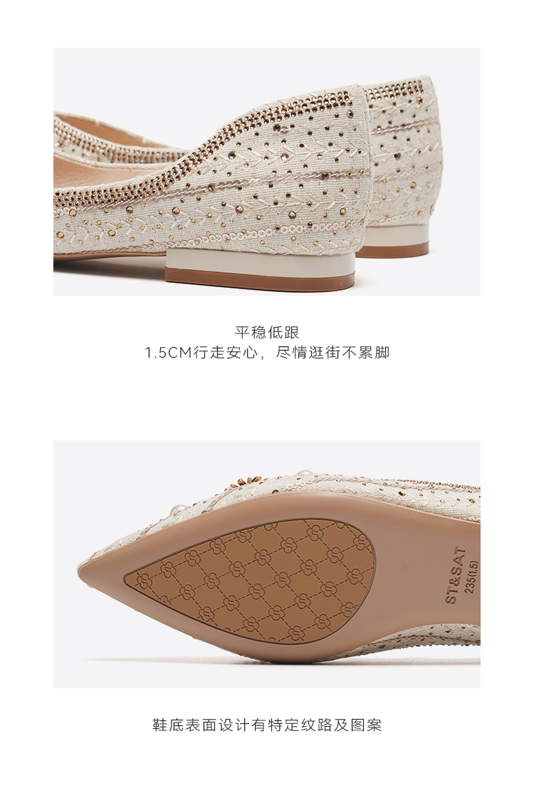 星期六26春新款新中式珍珠闪钻平底单鞋SSE1111151