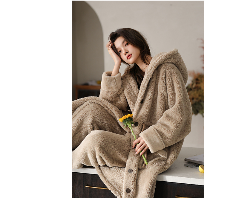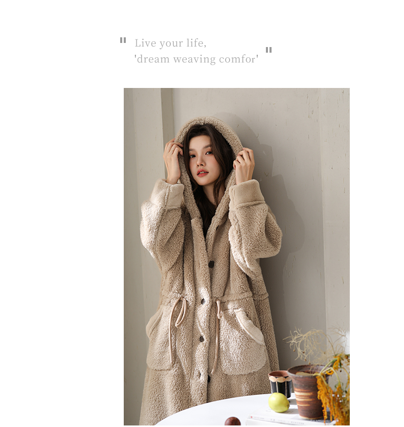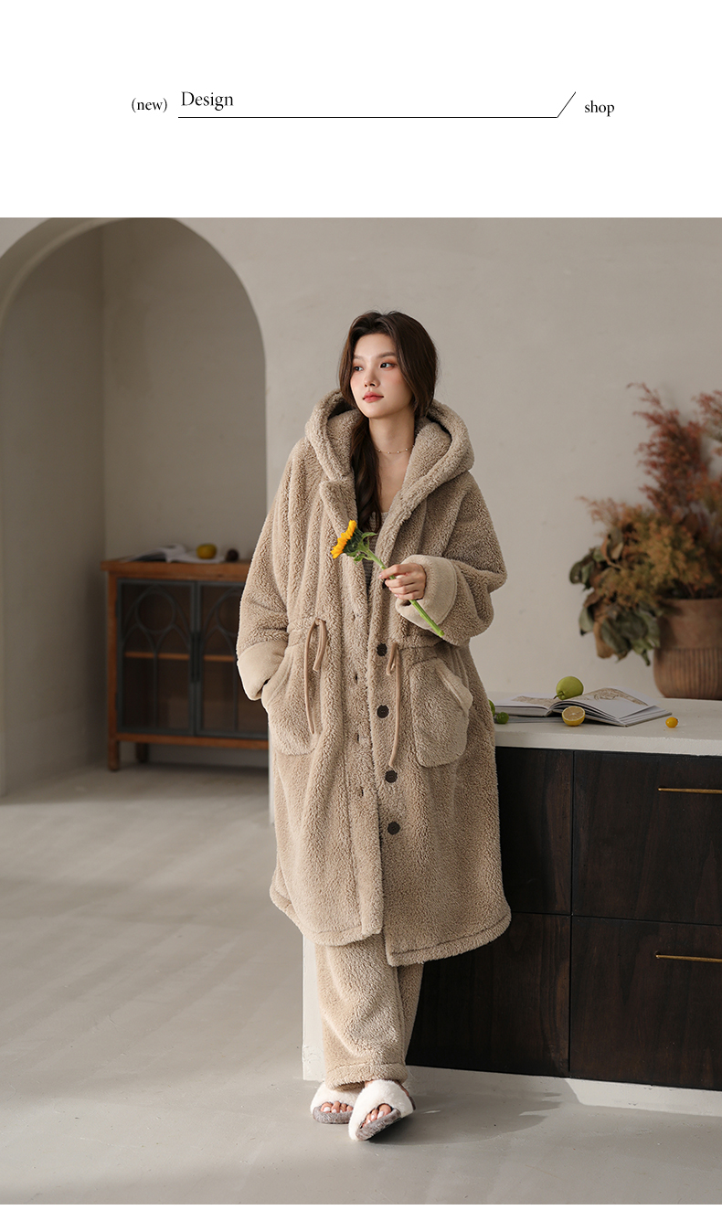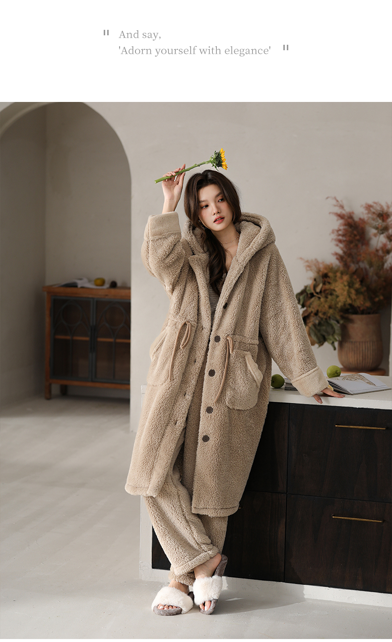 可人儿原创冬季舒棉绒女士睡袍韩系加厚保暖可外穿珊瑚绒家居服
