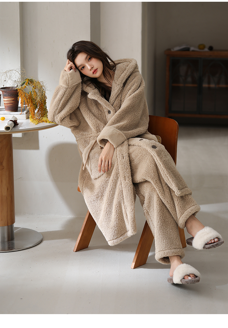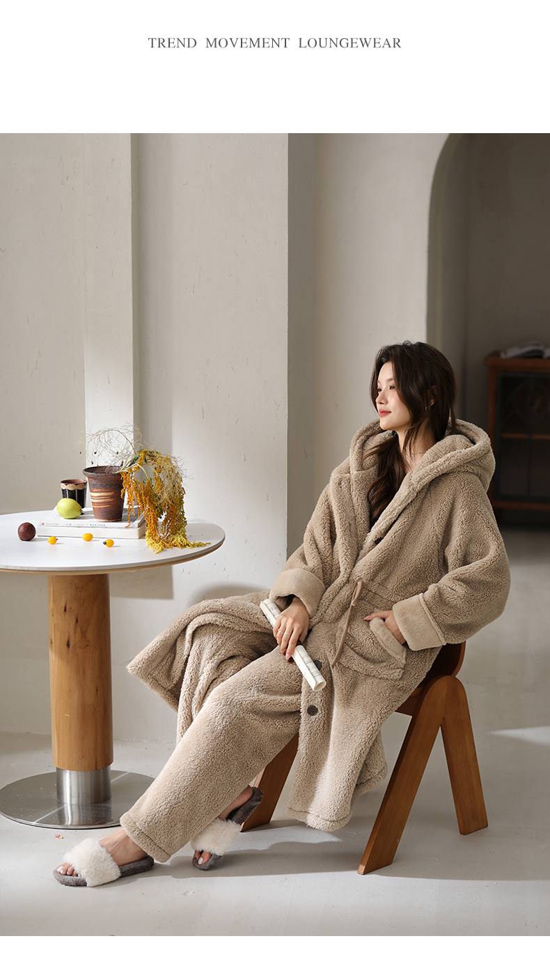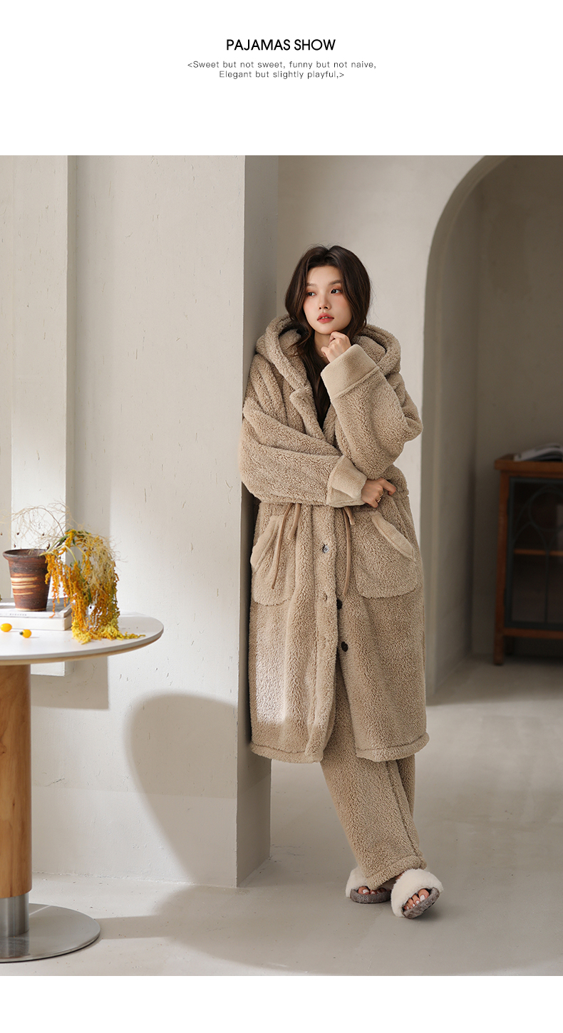 可人儿原创冬季舒棉绒女士睡袍韩系加厚保暖可外穿珊瑚绒家居服