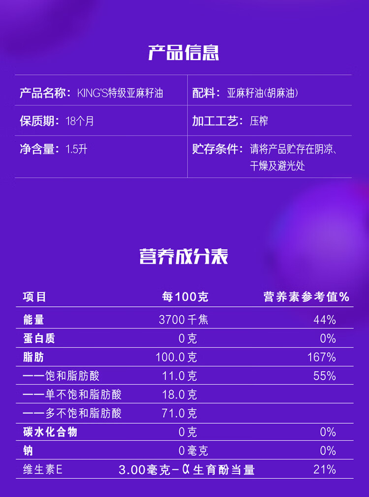 金龙鱼KING'S亚麻籽油1.5L