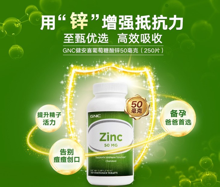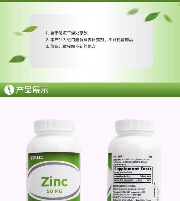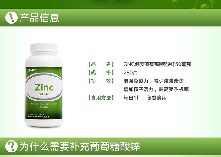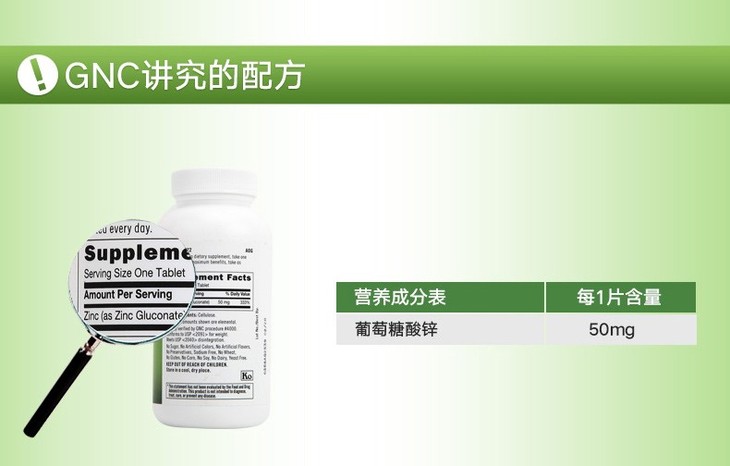GNC/健安喜 葡萄糖酸锌 50MG 250片 直邮JPY带授权招加盟代理