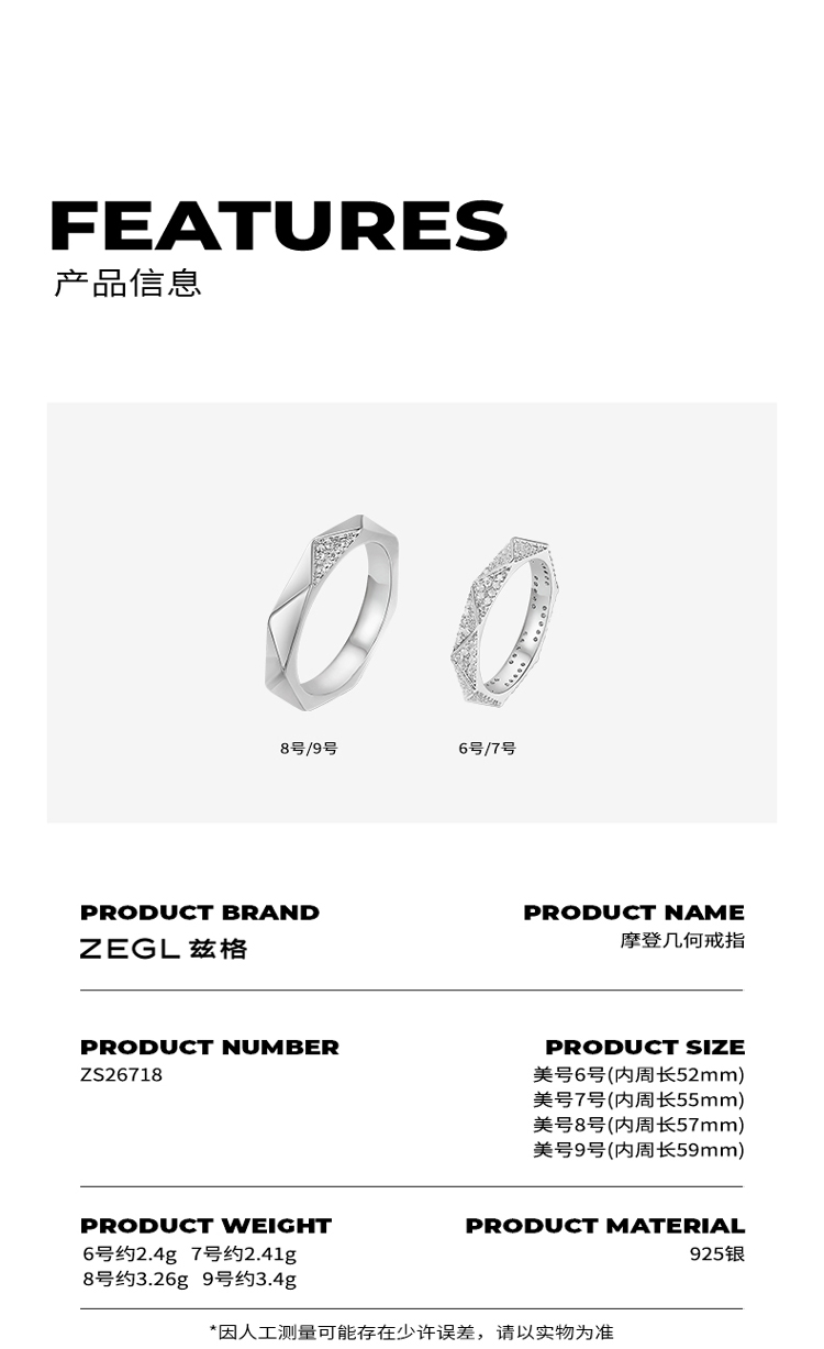 ZEGL925纯银情侣戒指男女对戒小众设计送女友朋友情人节生日礼物