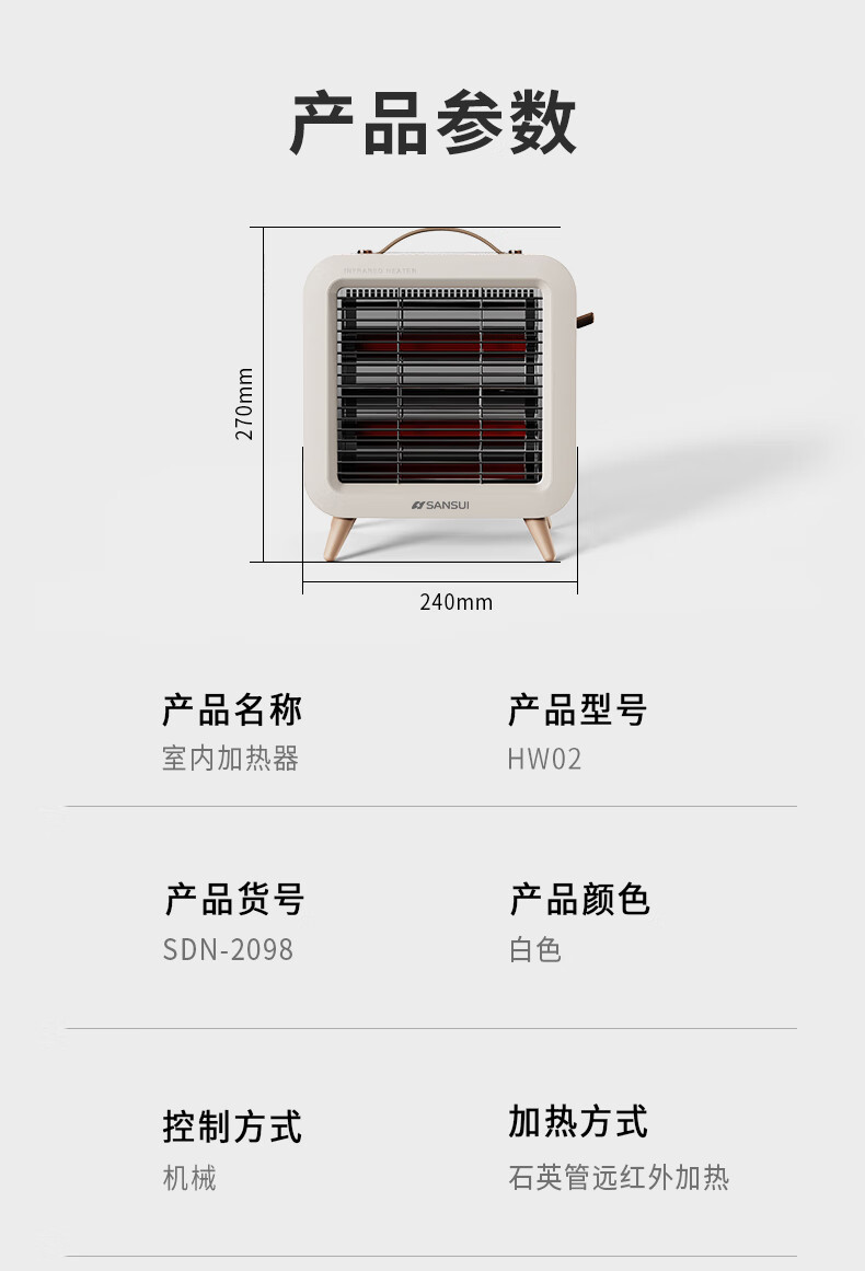 山水(SANSUI)大红管远红外加热取暖器SDN-2098