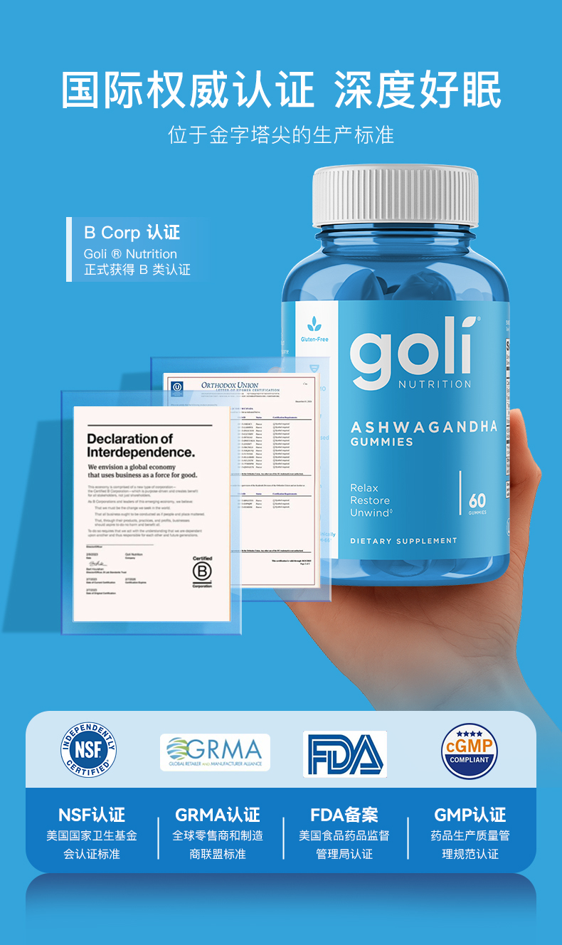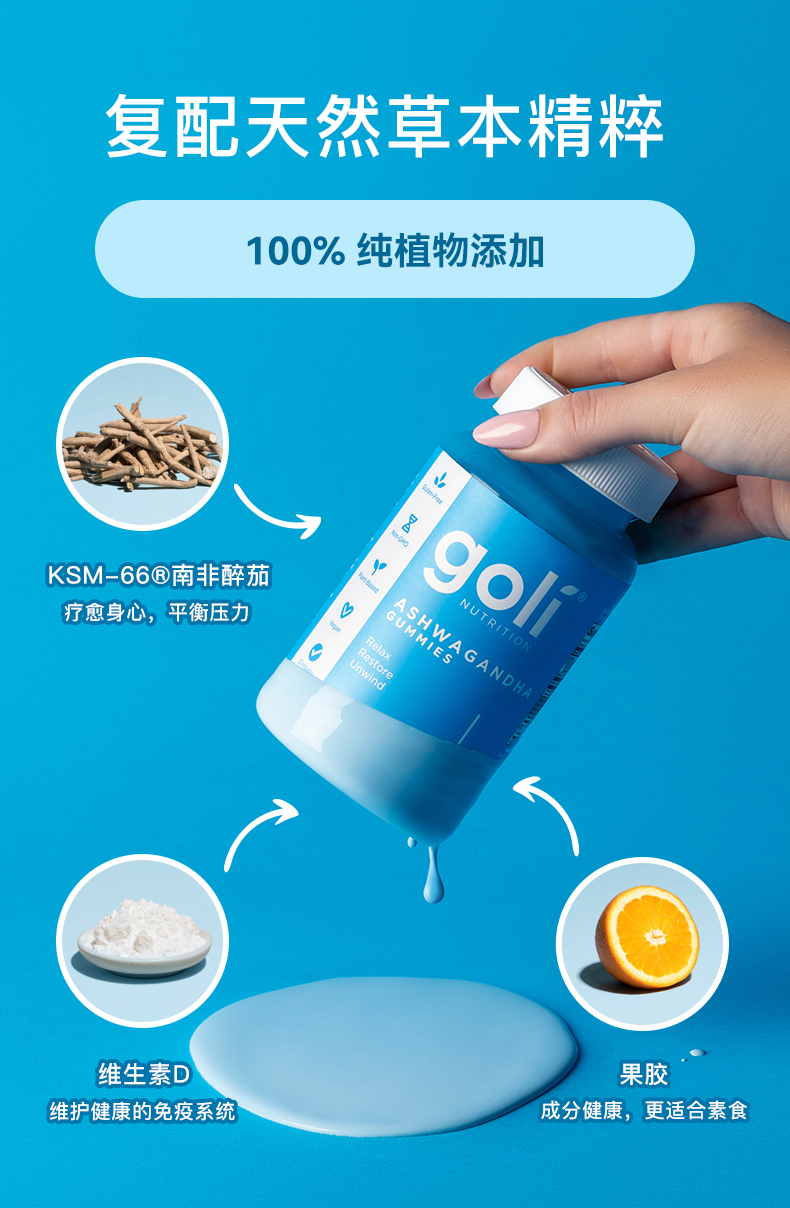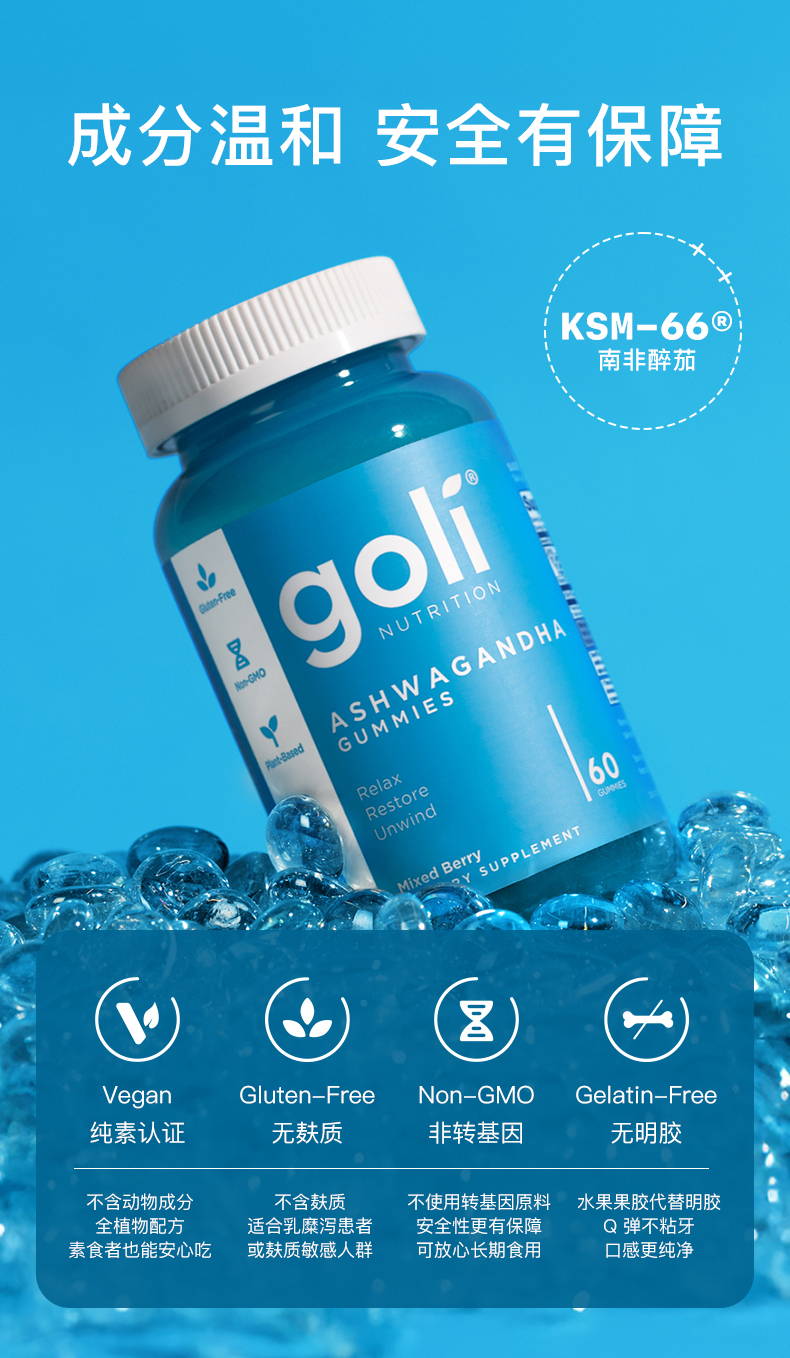 GOLI缓焦减压南非醉茄软糖60颗降皮质醇舒缓情绪帮助睡眠