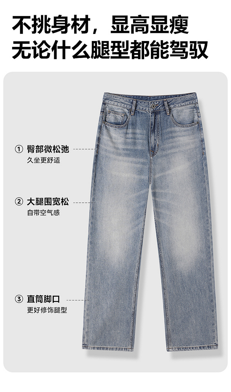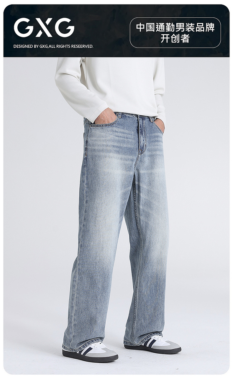 GXG男装26夏季经典水洗潮流舒适时尚日常通勤直筒休闲男式牛仔裤K&C