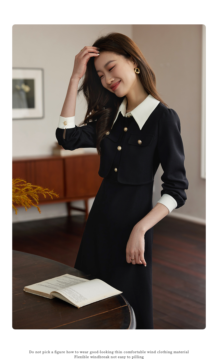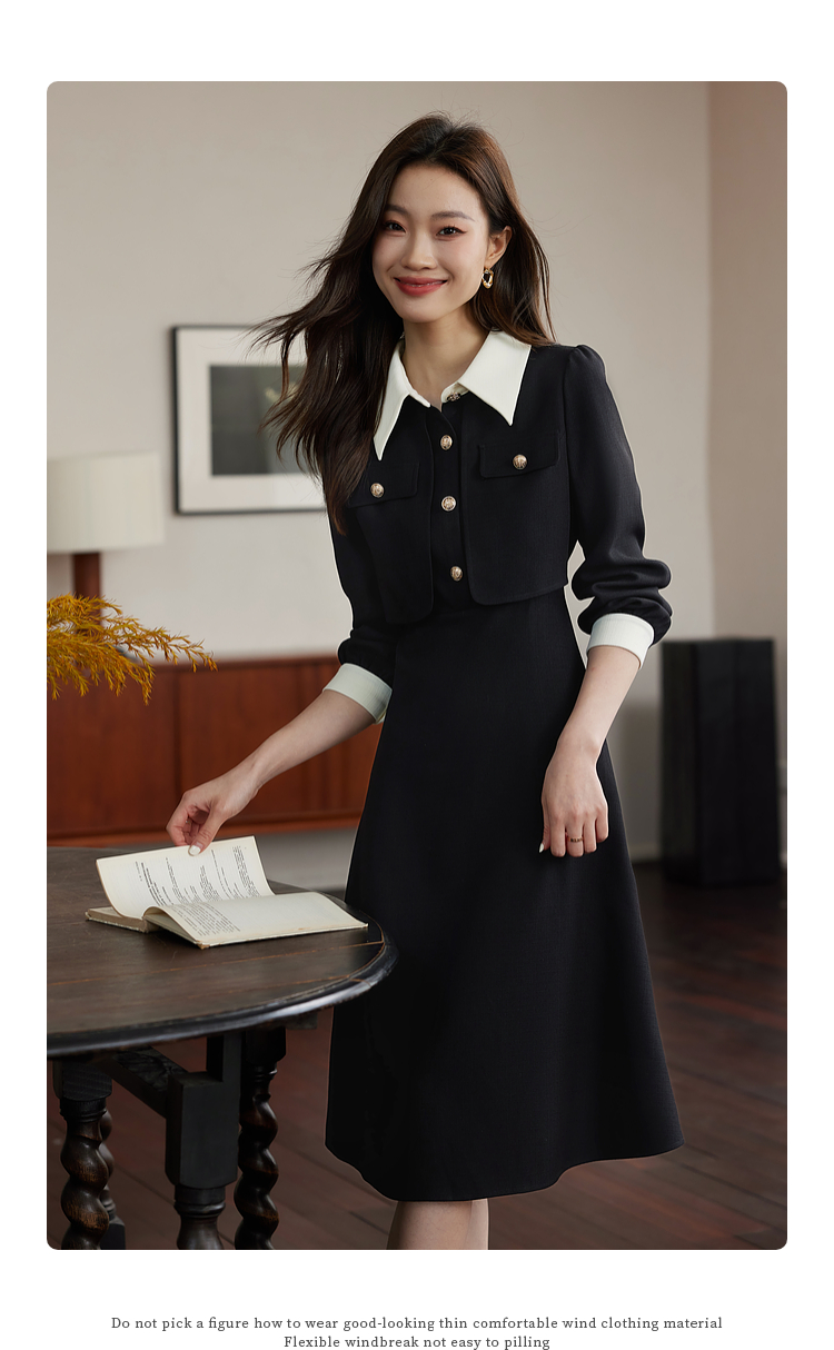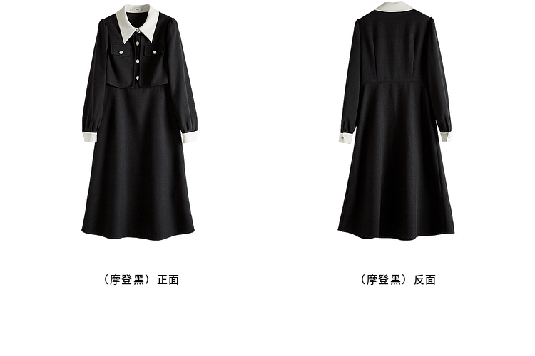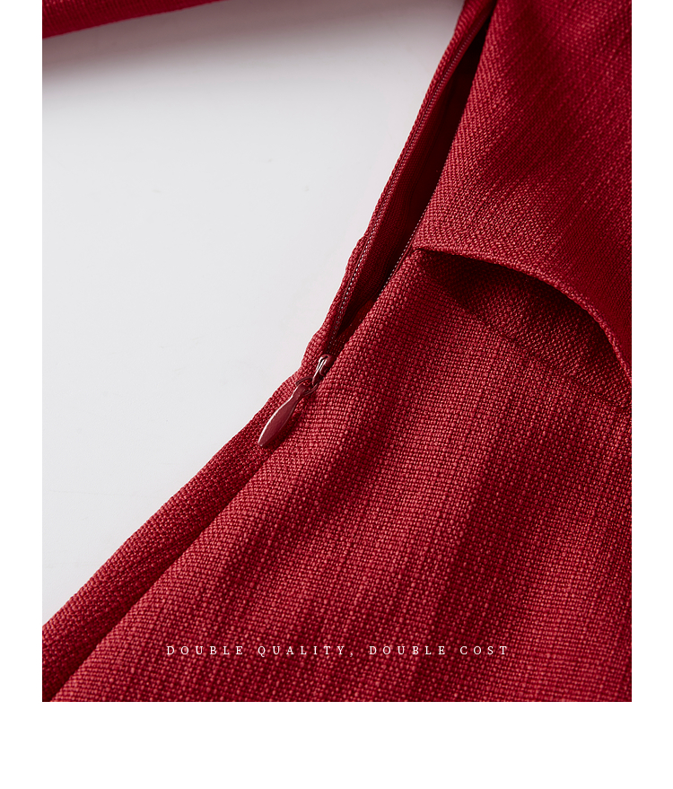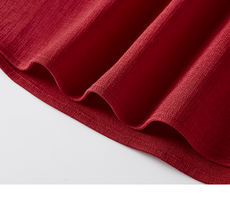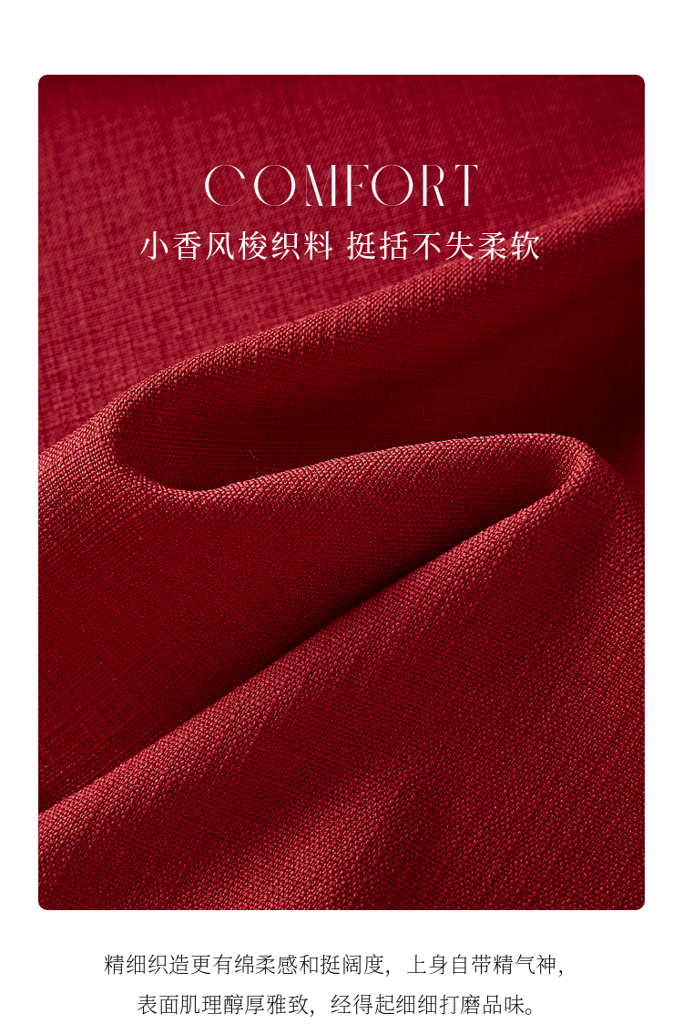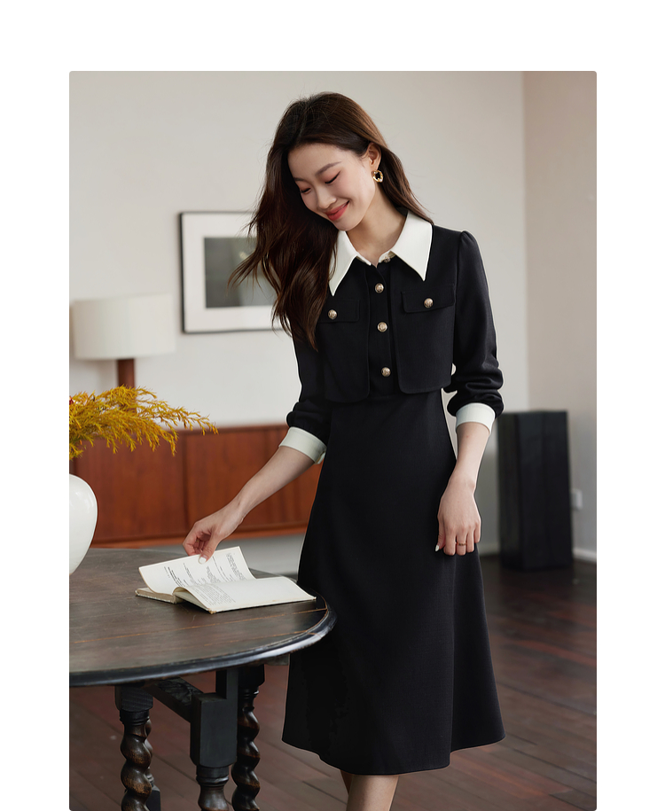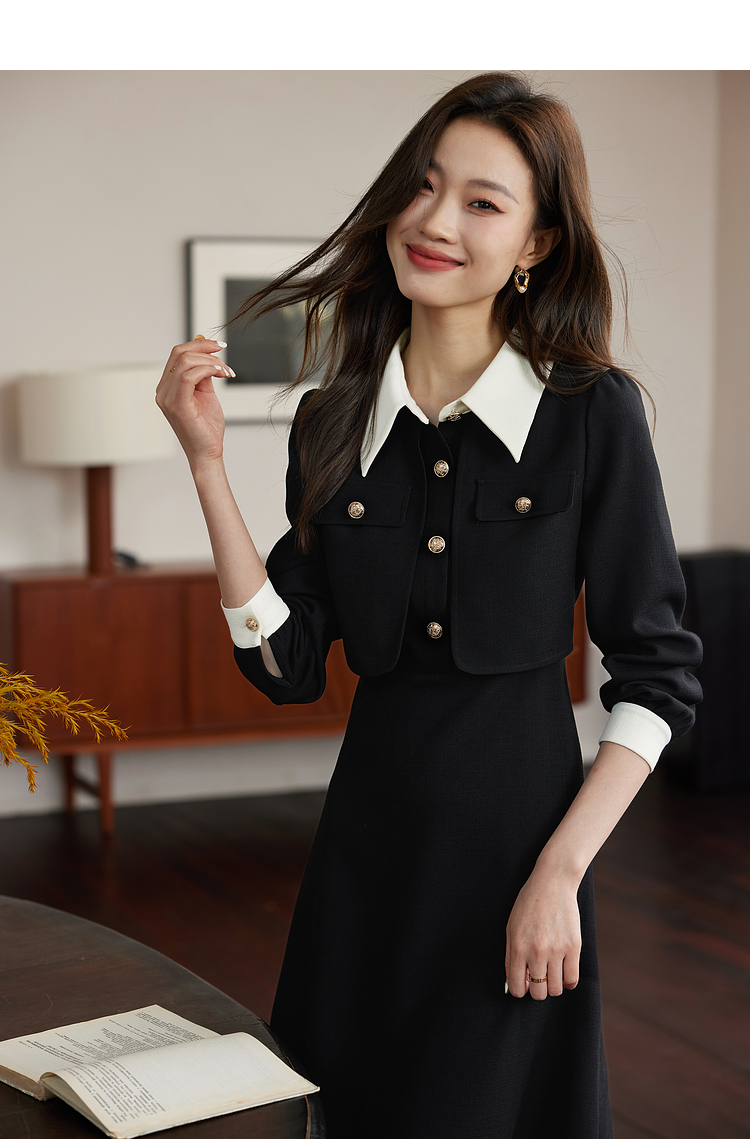 【五折购】熙世界赫本小香风红色连衣裙女2025秋季新款气质衬衫领假两件裙子