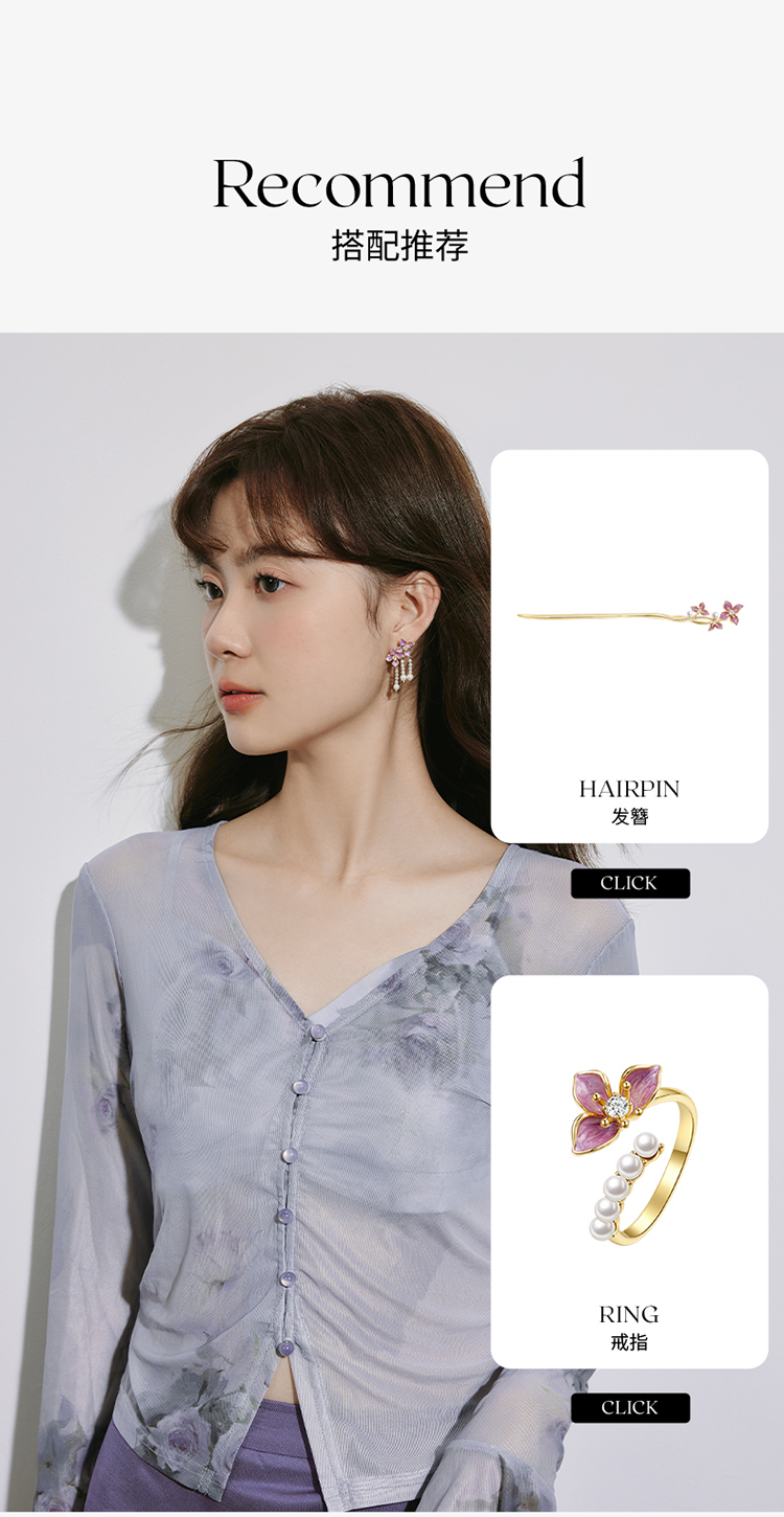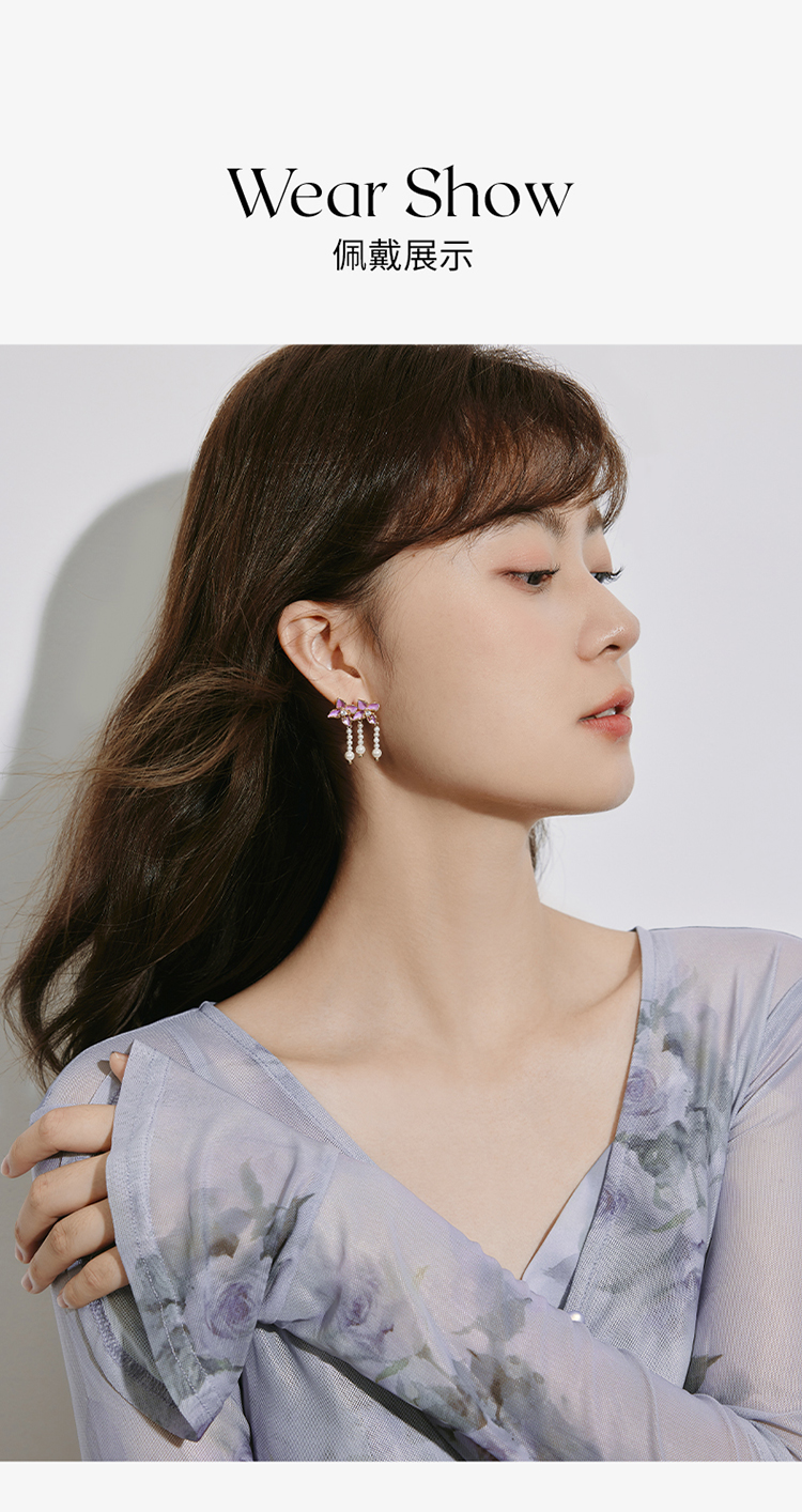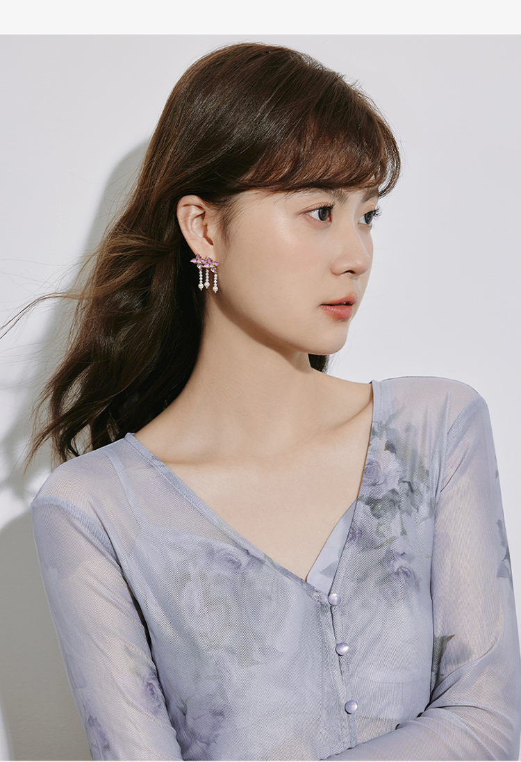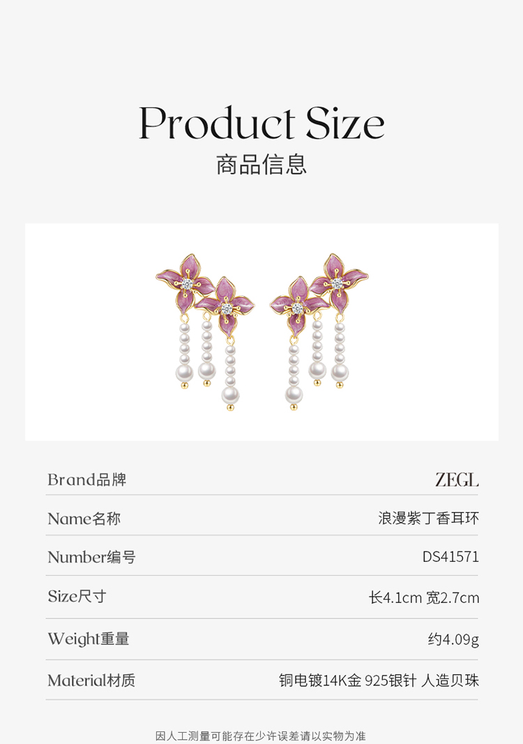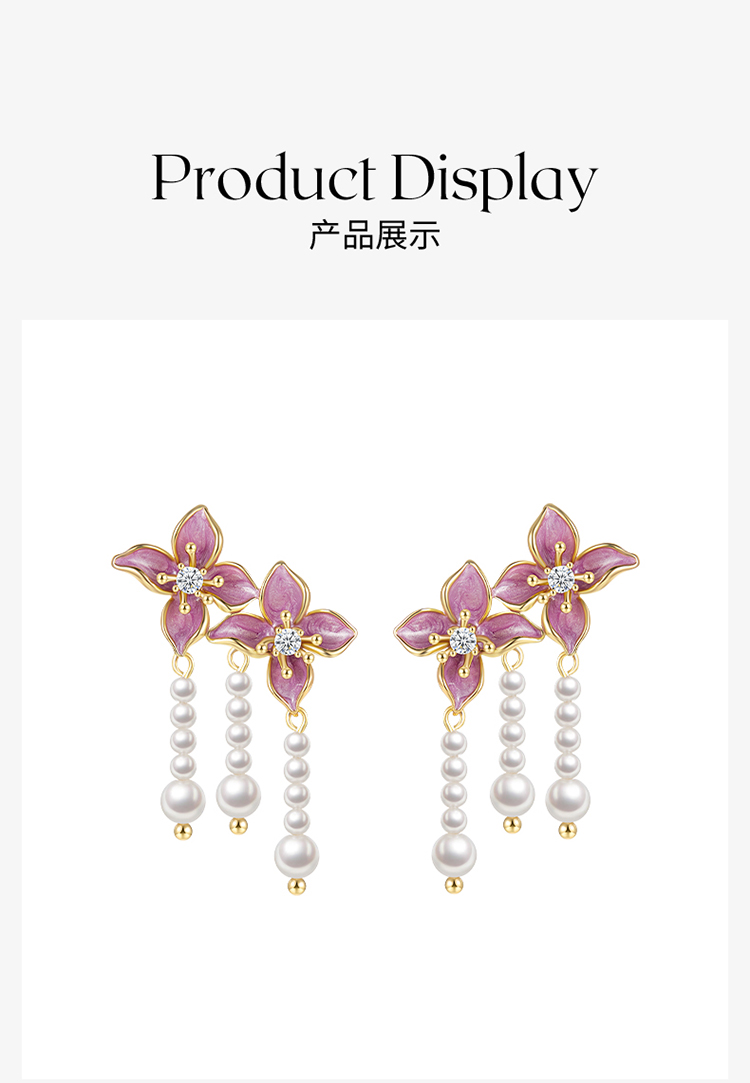 ZEGL设计师紫丁香系列法式人造珍珠流苏耳环女高级感耳钉银针耳饰