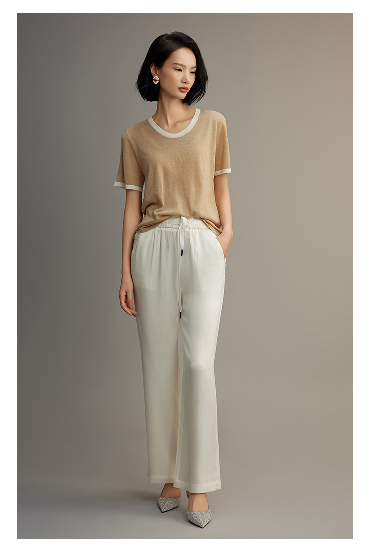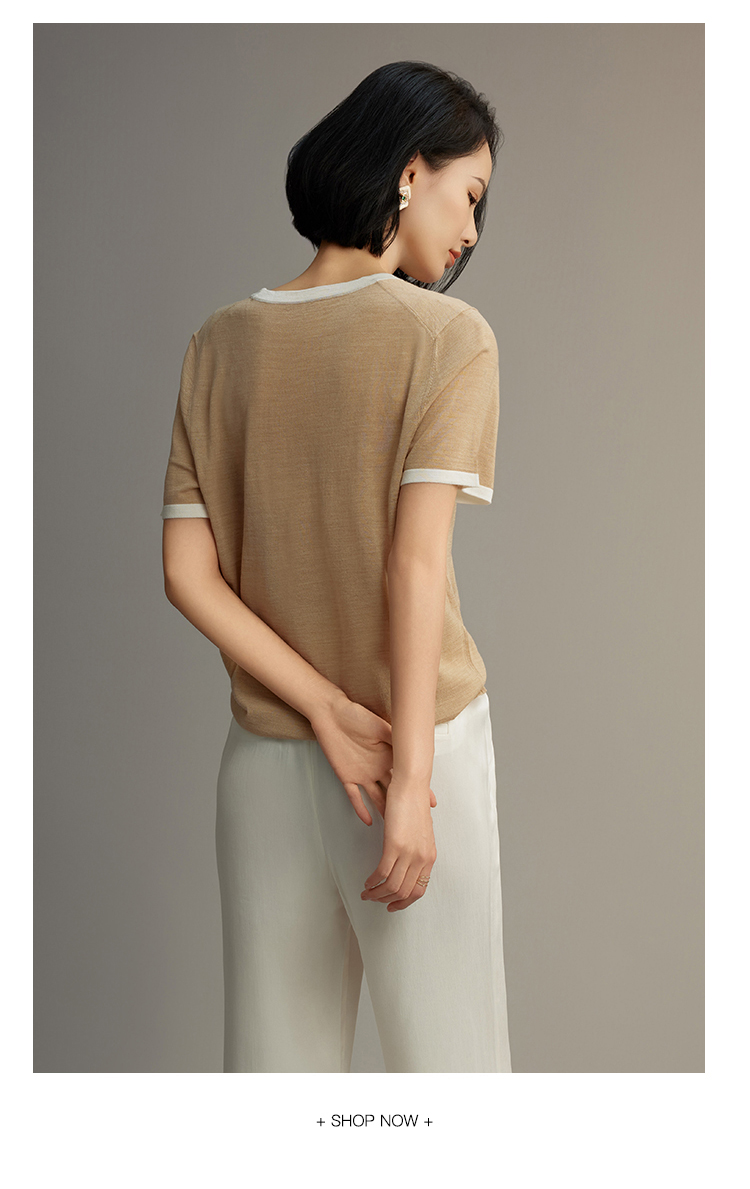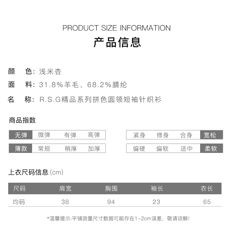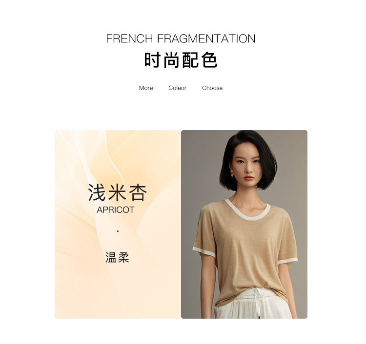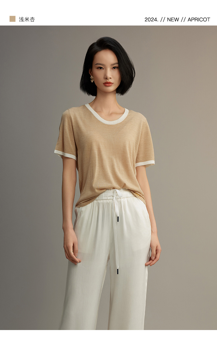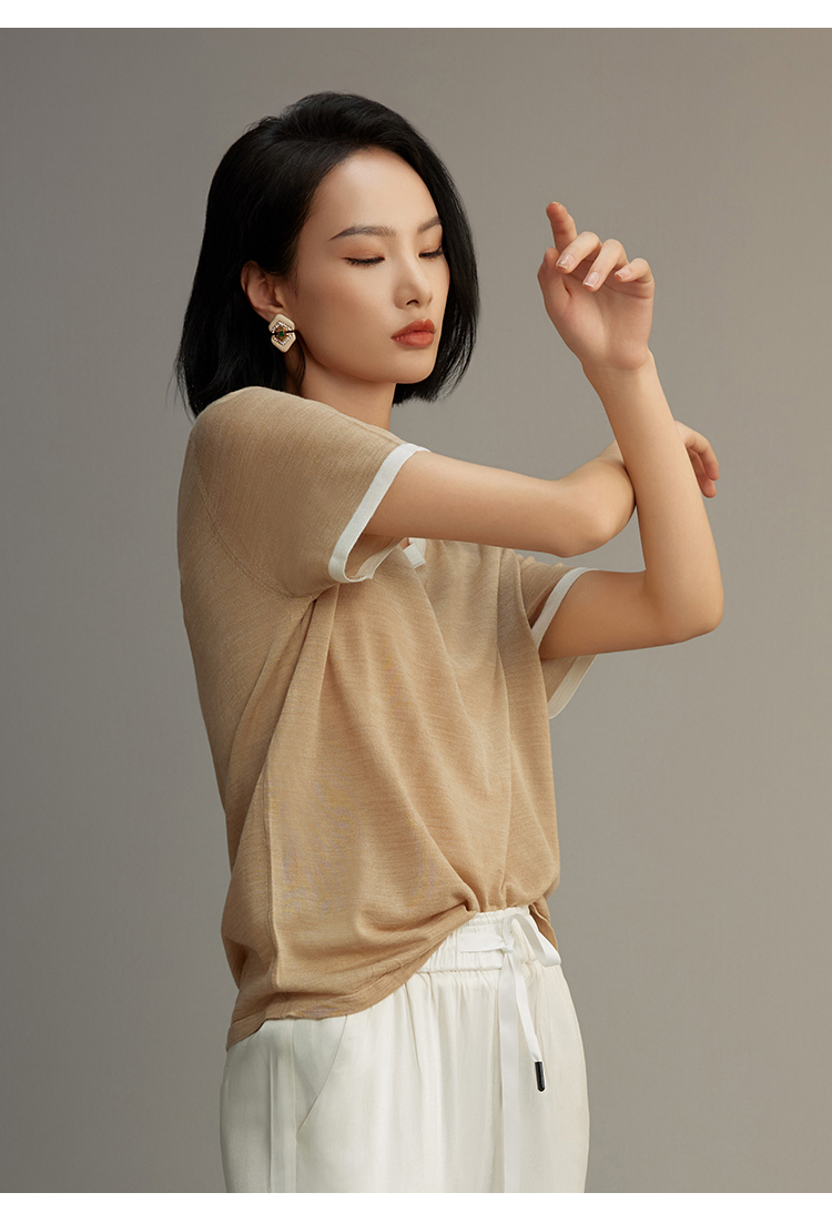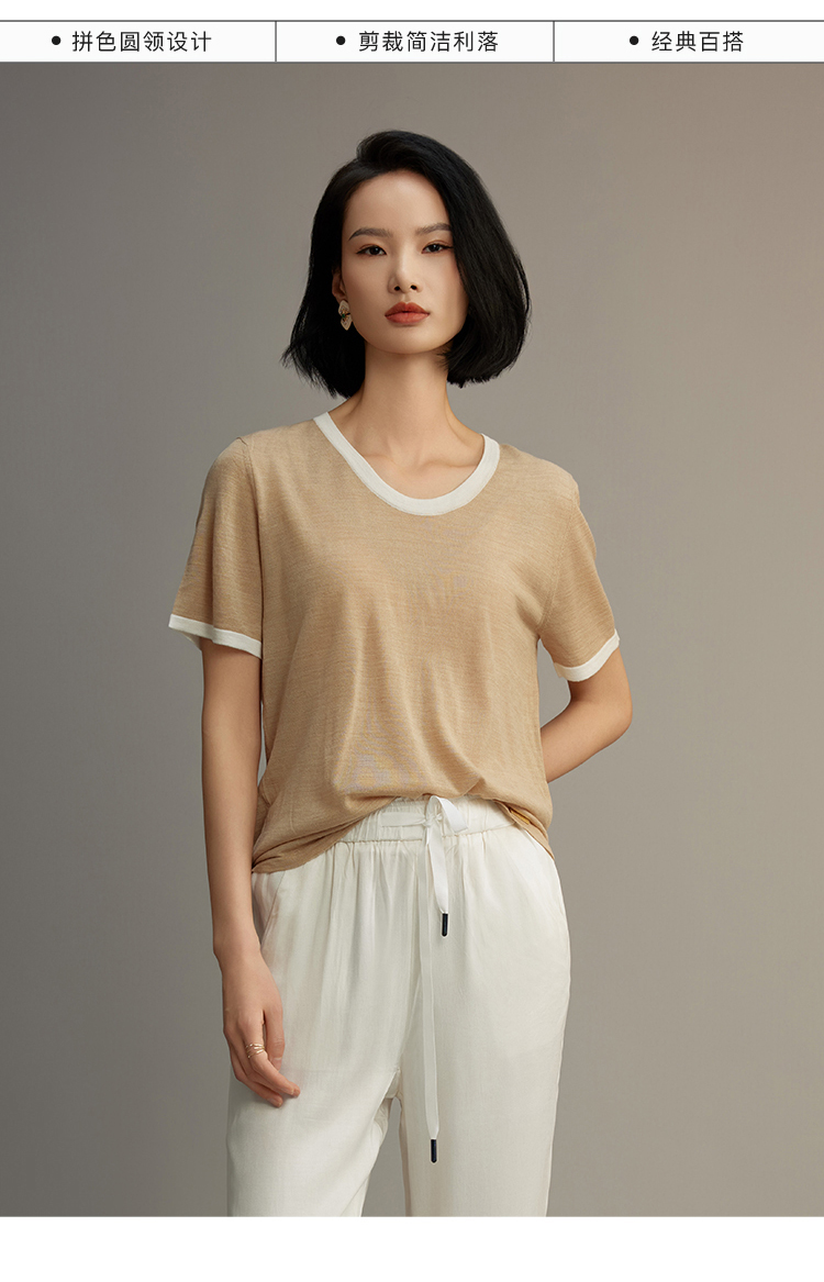 R.S.G精品系列短袖薄款针织衫女装撞色圆领高级感宽松t恤上衣