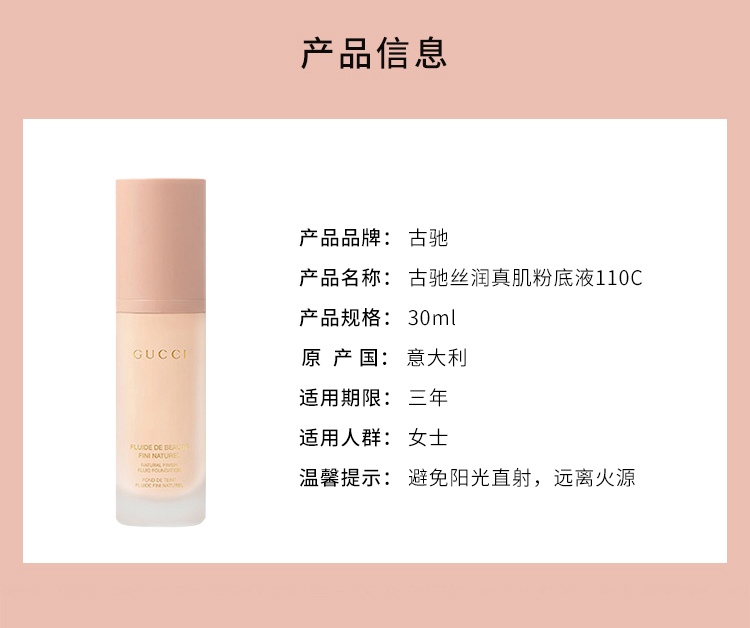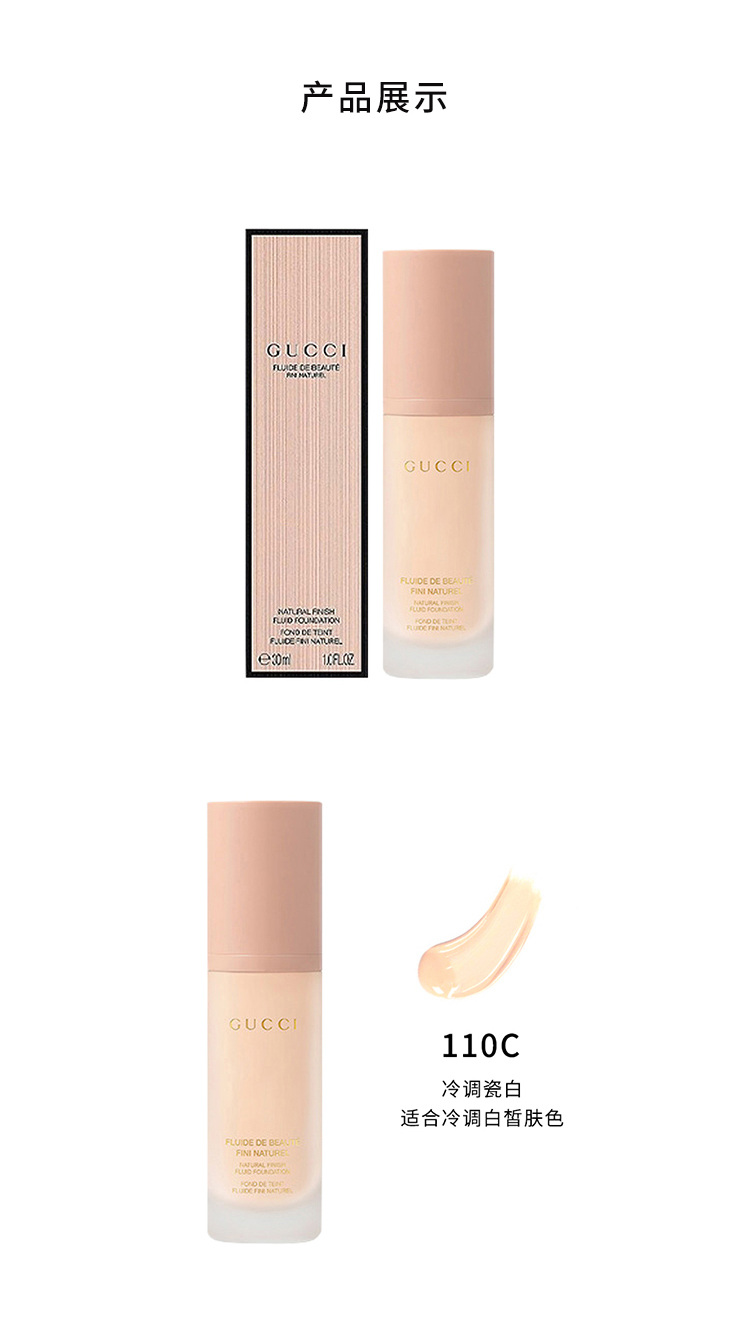 古驰(GUCCI)丝润真肌粉底液/妆前乳 遮瑕持久保湿水润 110C 30ml 冷调瓷白