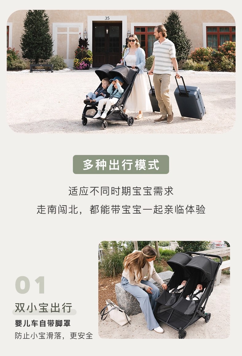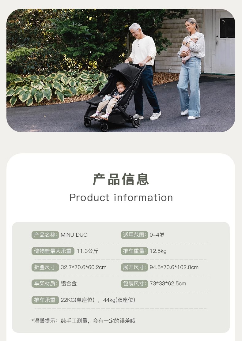 美国UPPAbaby Minu Duo 双胞胎婴儿车轻便可折叠双座新生儿避震推车0-4岁