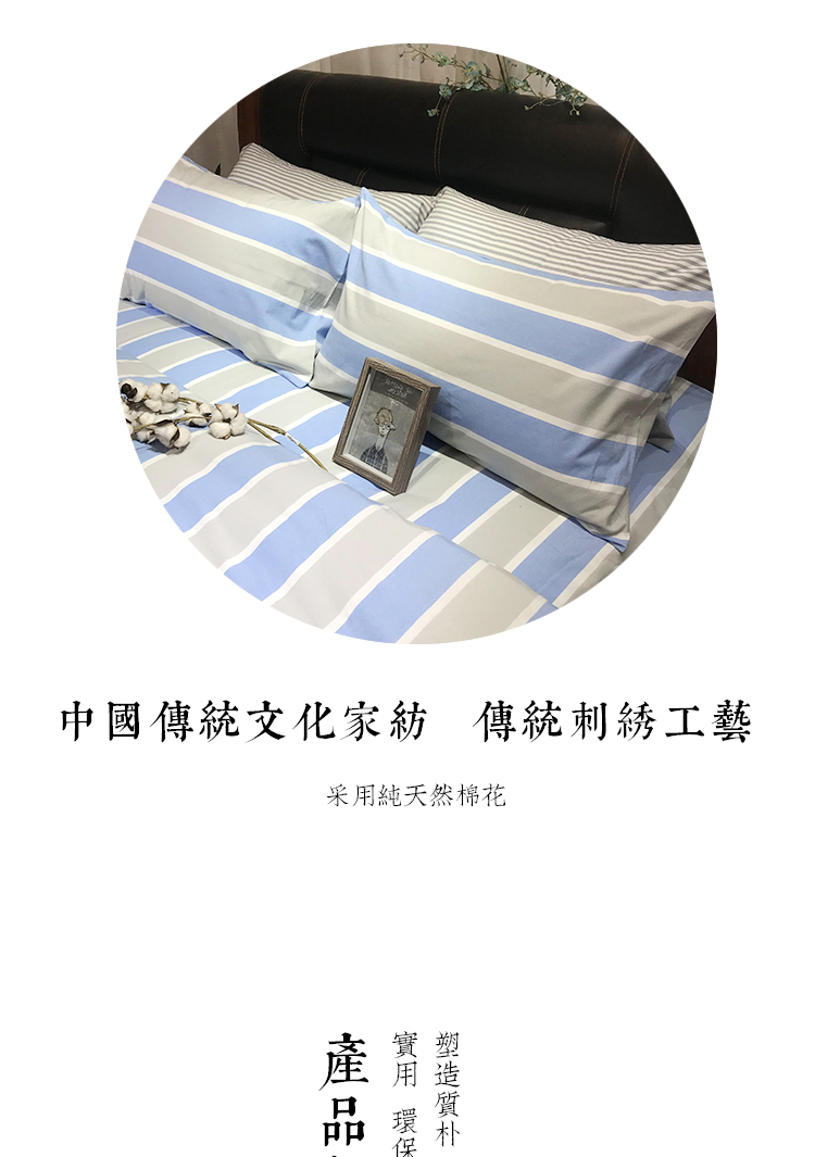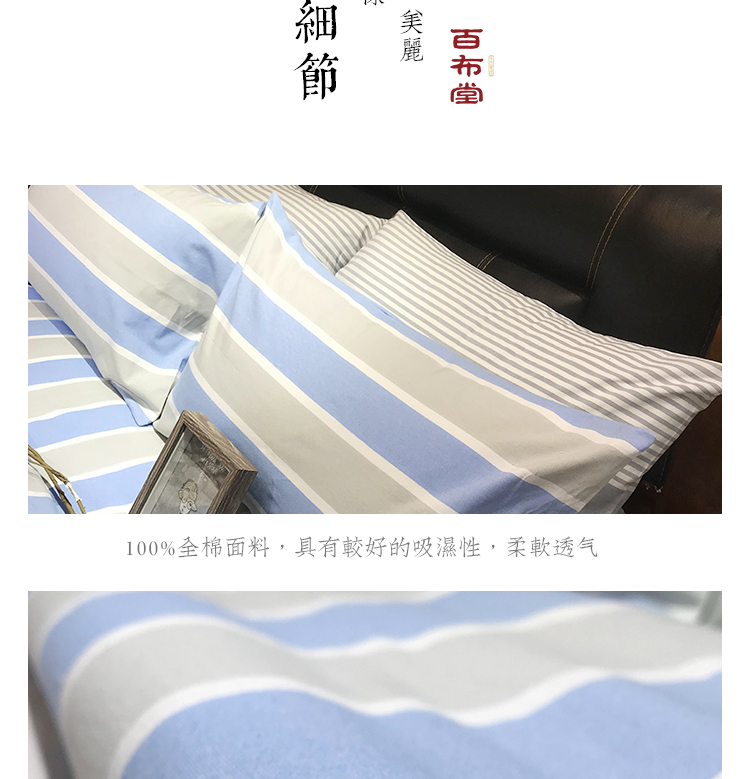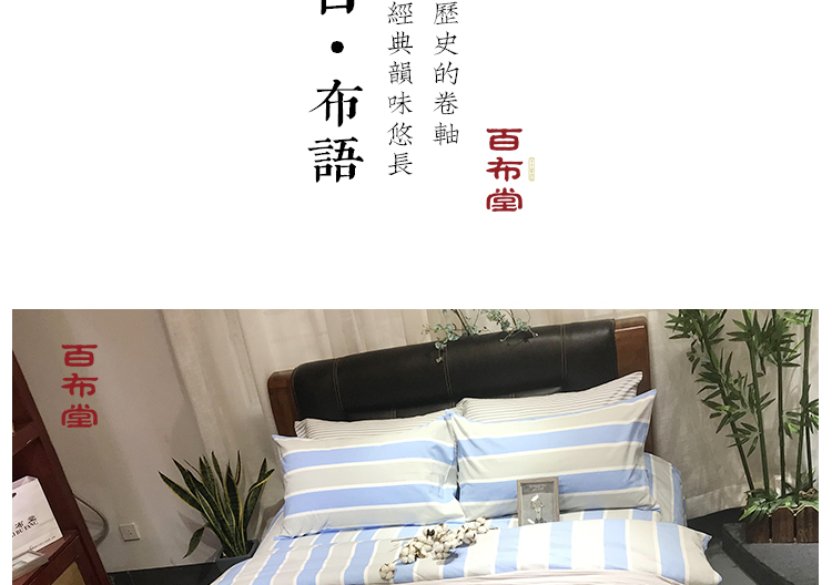 (乡村振兴商品)百布堂纯棉四件套A3版(蓝灰条纹) 商品图3