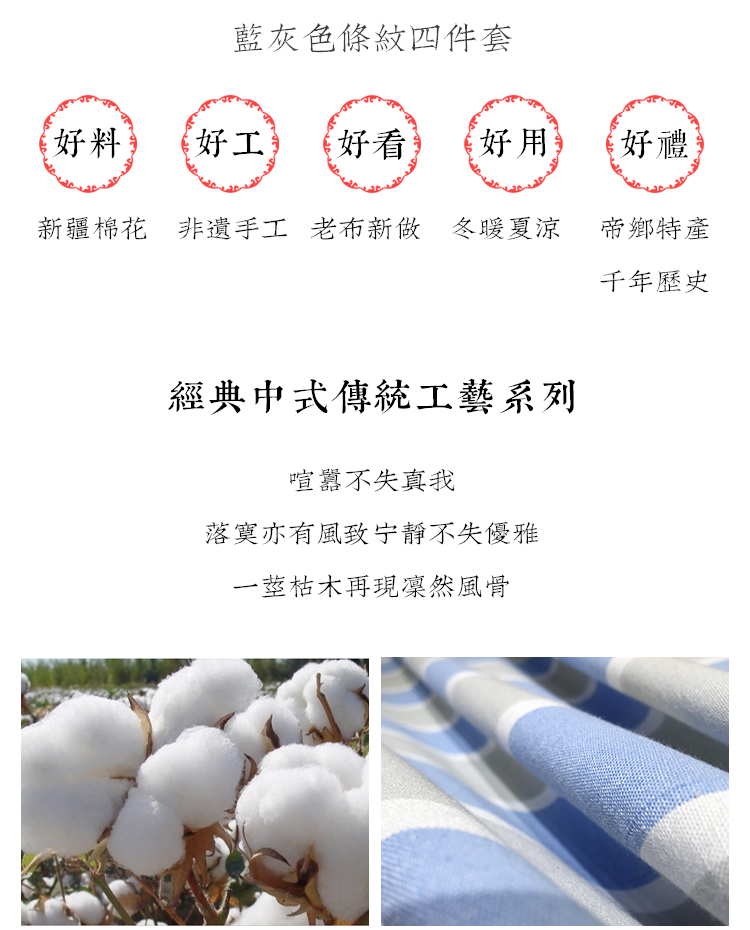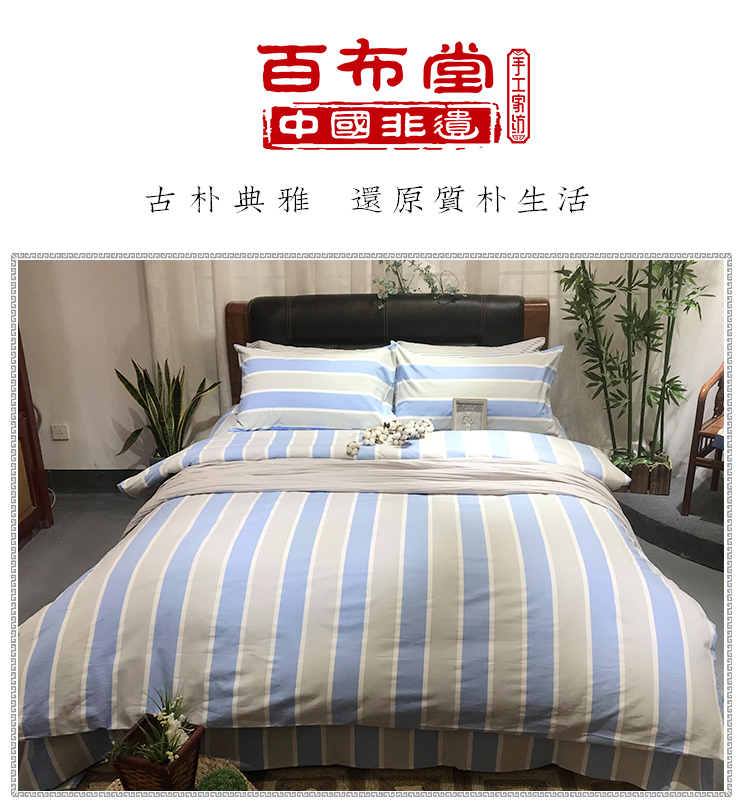 (乡村振兴商品)百布堂纯棉四件套A3版(蓝灰条纹) 商品图5