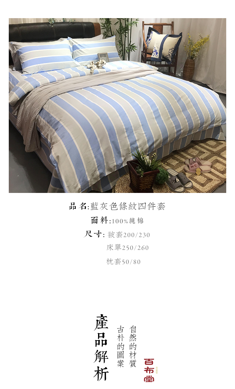 (乡村振兴商品)百布堂纯棉四件套A3版(蓝灰条纹) 商品图0