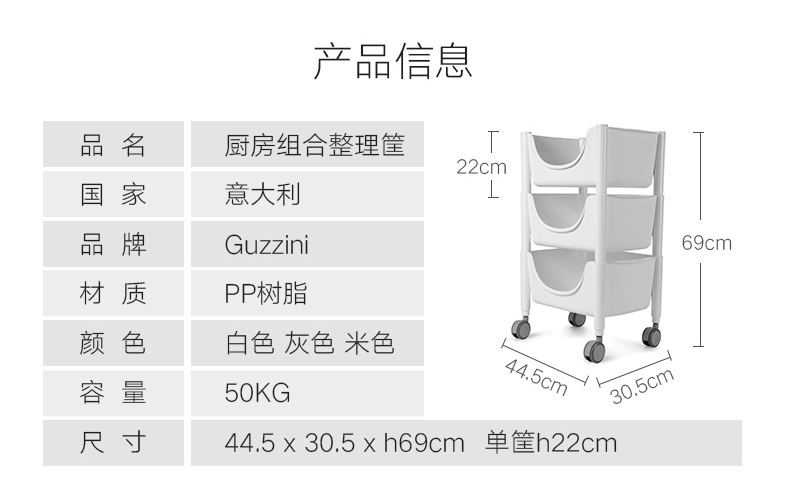 利快意大利Guzzini落地整理筐置地式收纳架置物架推车式收纳篮