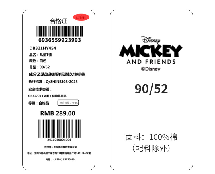【90-140】【迪士尼baby】女童春秋纯棉长袖T恤(100%棉)