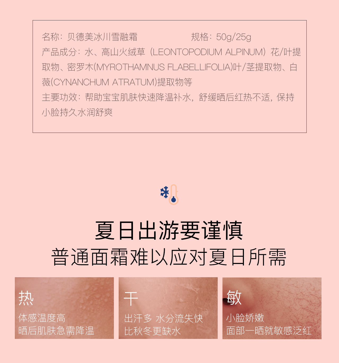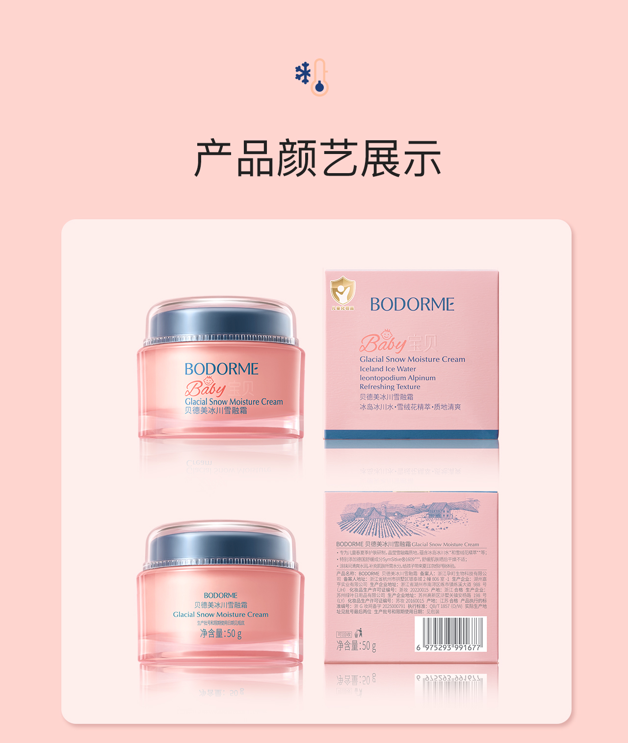 贝德美bodorme冰川雪融春夏儿童面霜轻薄婴儿宝宝霜25g/50g