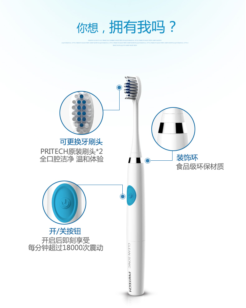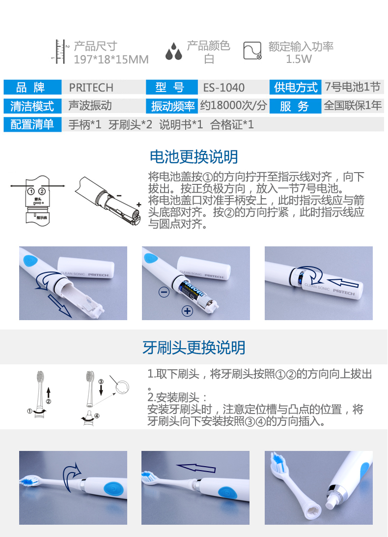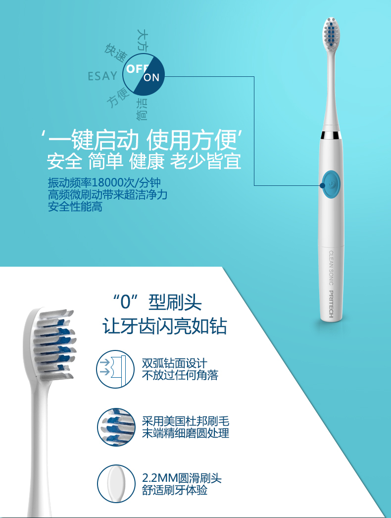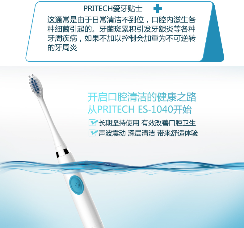 匹奇(PRITECH)声波电动牙刷可水洗 ES-1040