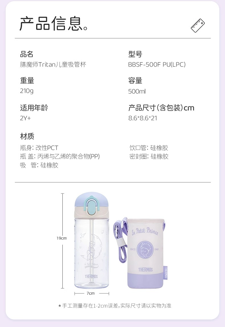 膳魔师x小王子tritan吸管杯儿童运动瓶户外水杯500ml