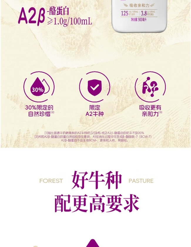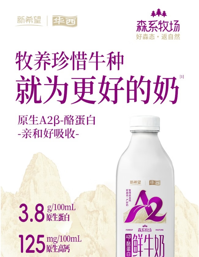 【买1送1】新希望华西森系牧场A2鲜牛奶 900ml