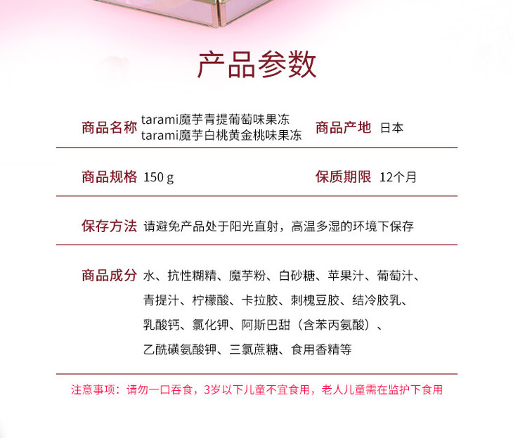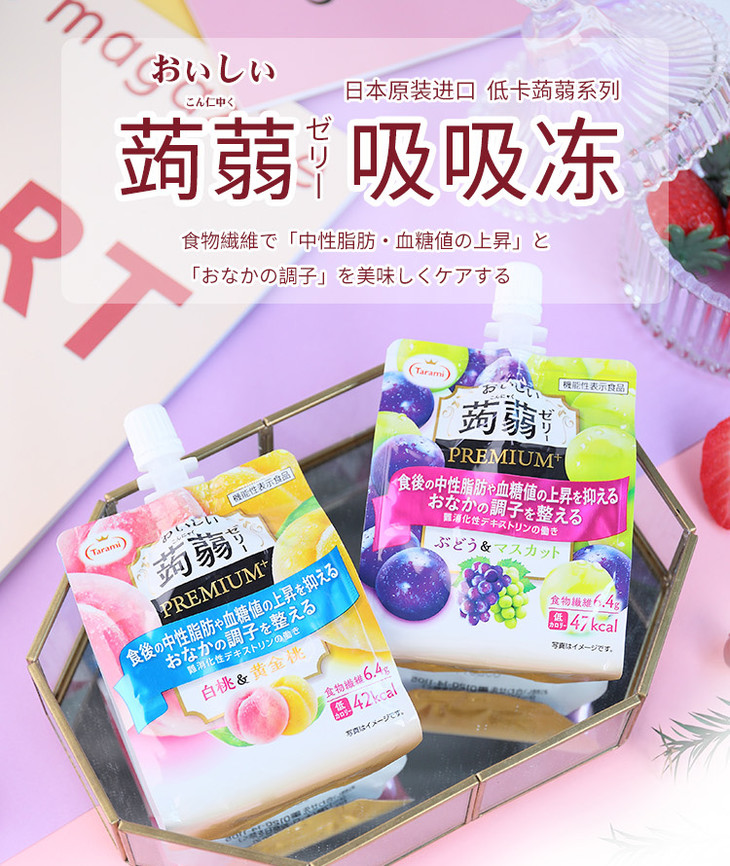 日本 多拉米蒟蒻可吸果冻(白桃黄桃混合味)150g 调节肠胃阻断卡路里膳食纤维果冻机能性食品(025457)
