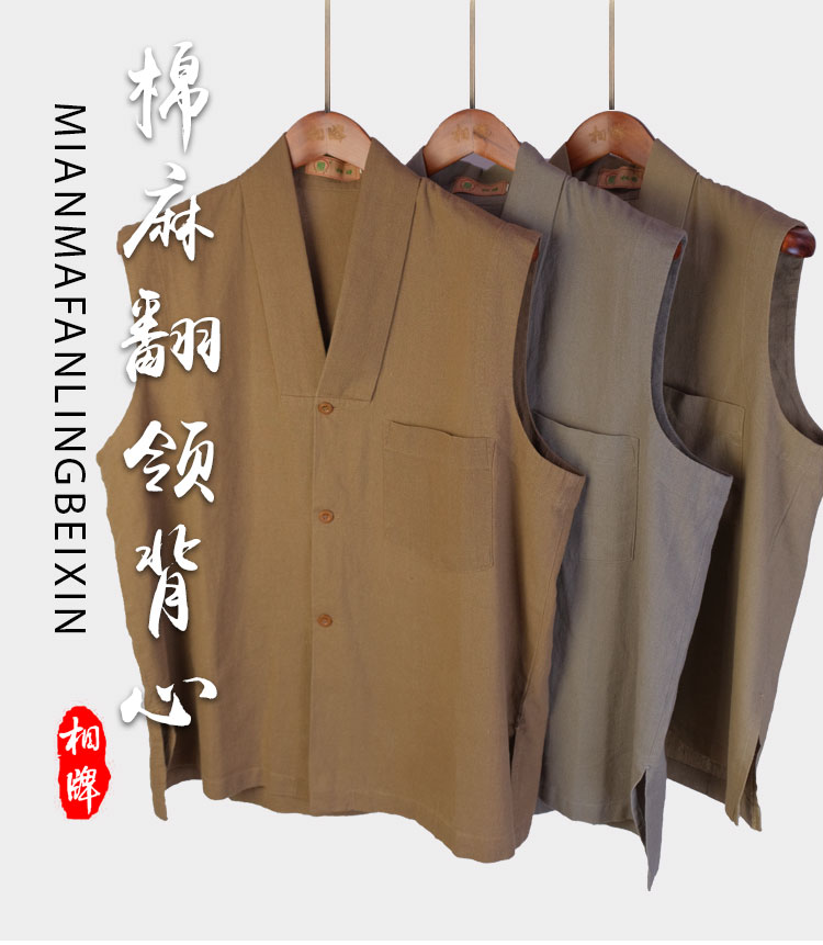 【相牌】棉麻无袖背心 夏 男女同款 薄款凉爽吸汗坎肩单马褂僧服