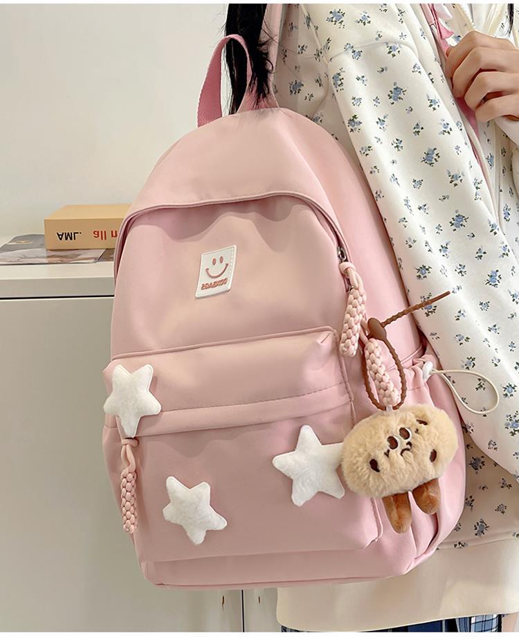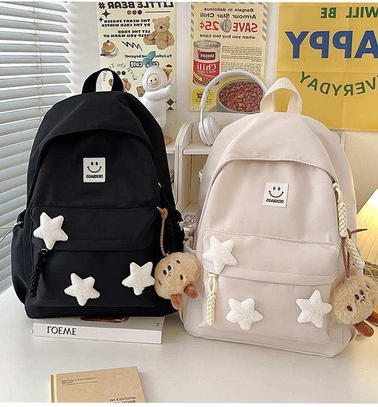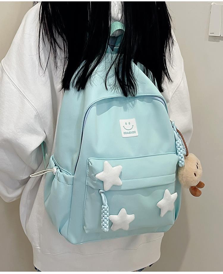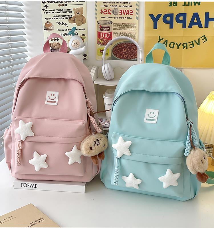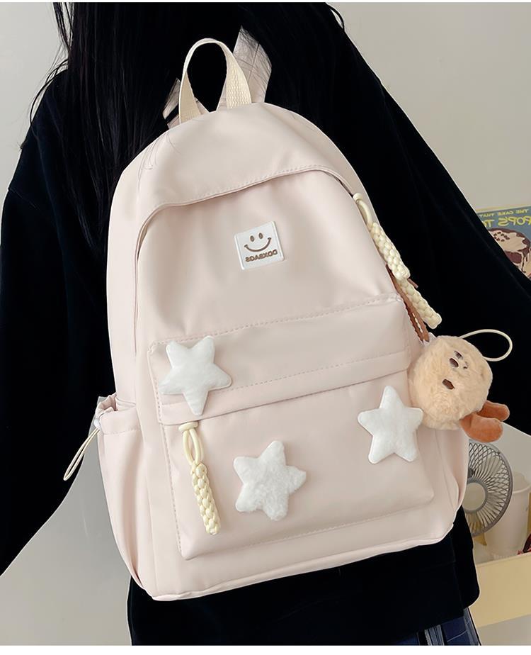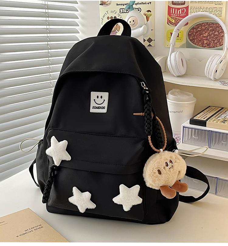 书包女生初中生小清新日系简约大容量百搭双肩包少女星星旅行背包