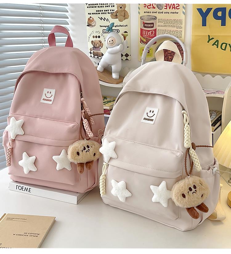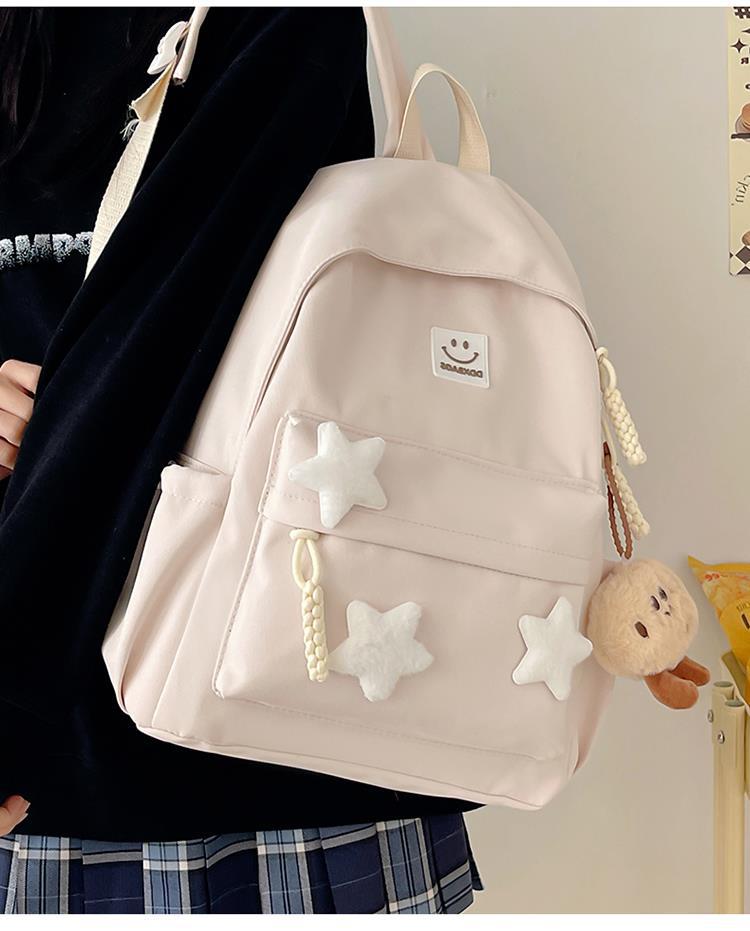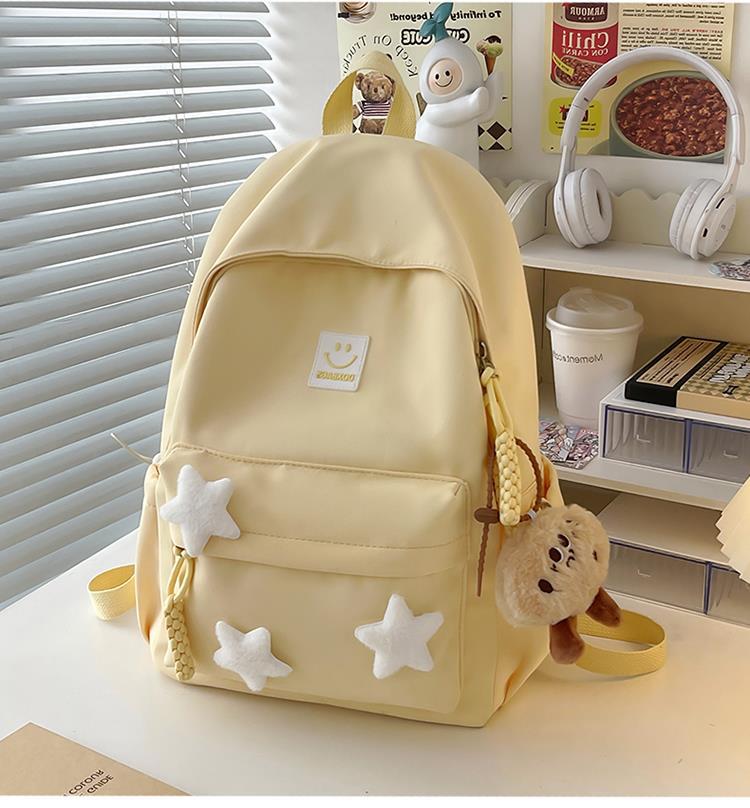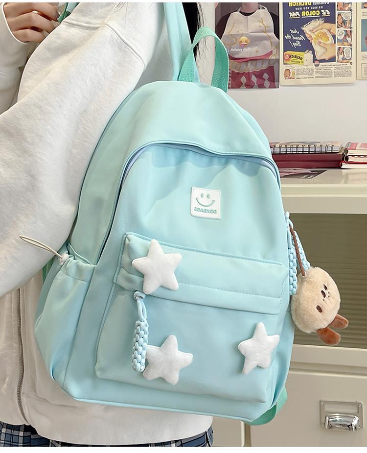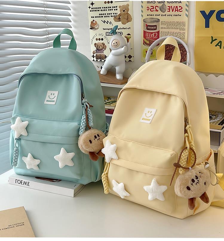 书包女生初中生小清新日系简约大容量百搭双肩包少女星星旅行背包